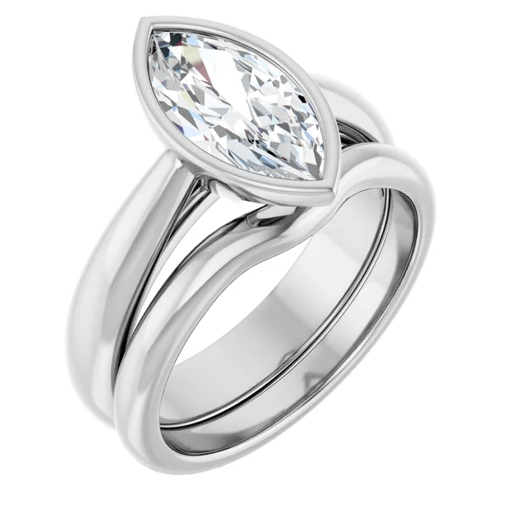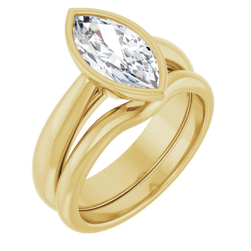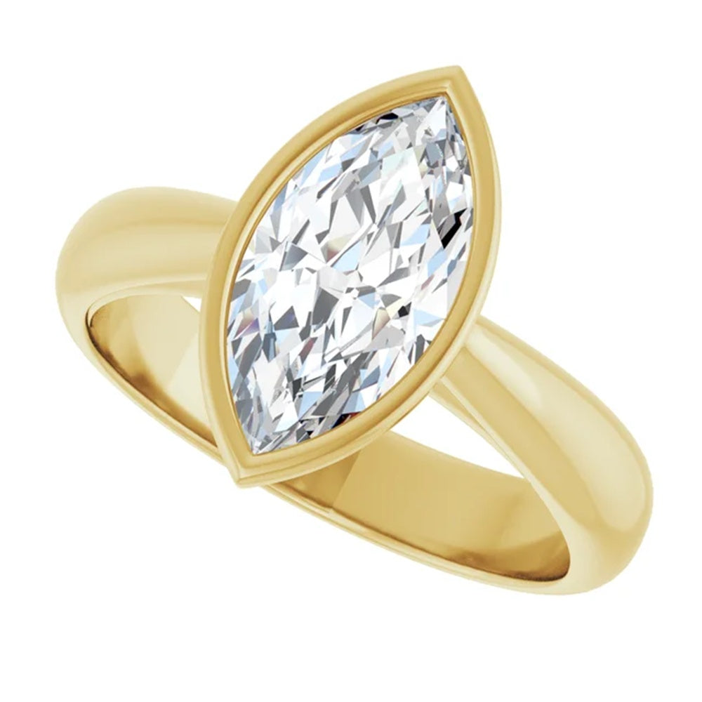 1.6 Carat Marquise Bezel Set Diamond Engagement Ring in 14k Gold