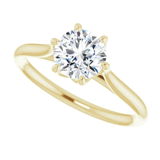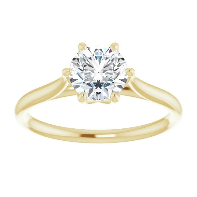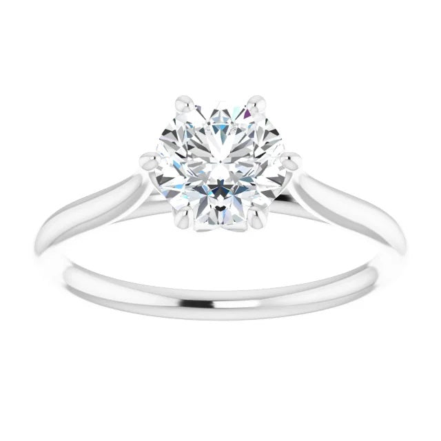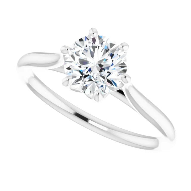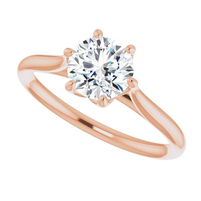 We used a 14k gold comfort fit, 6 prong setting style in your choice of white, yellow or rose gold.