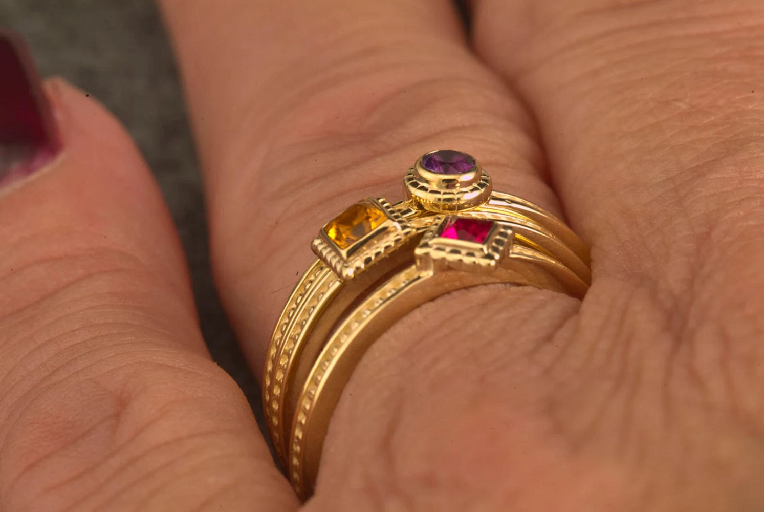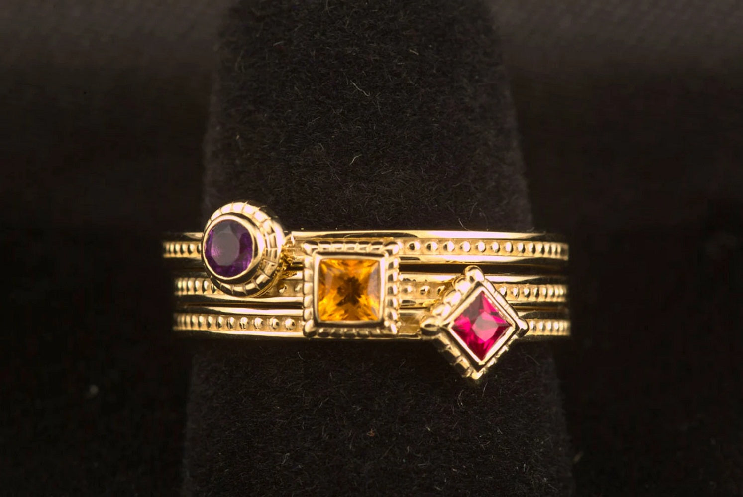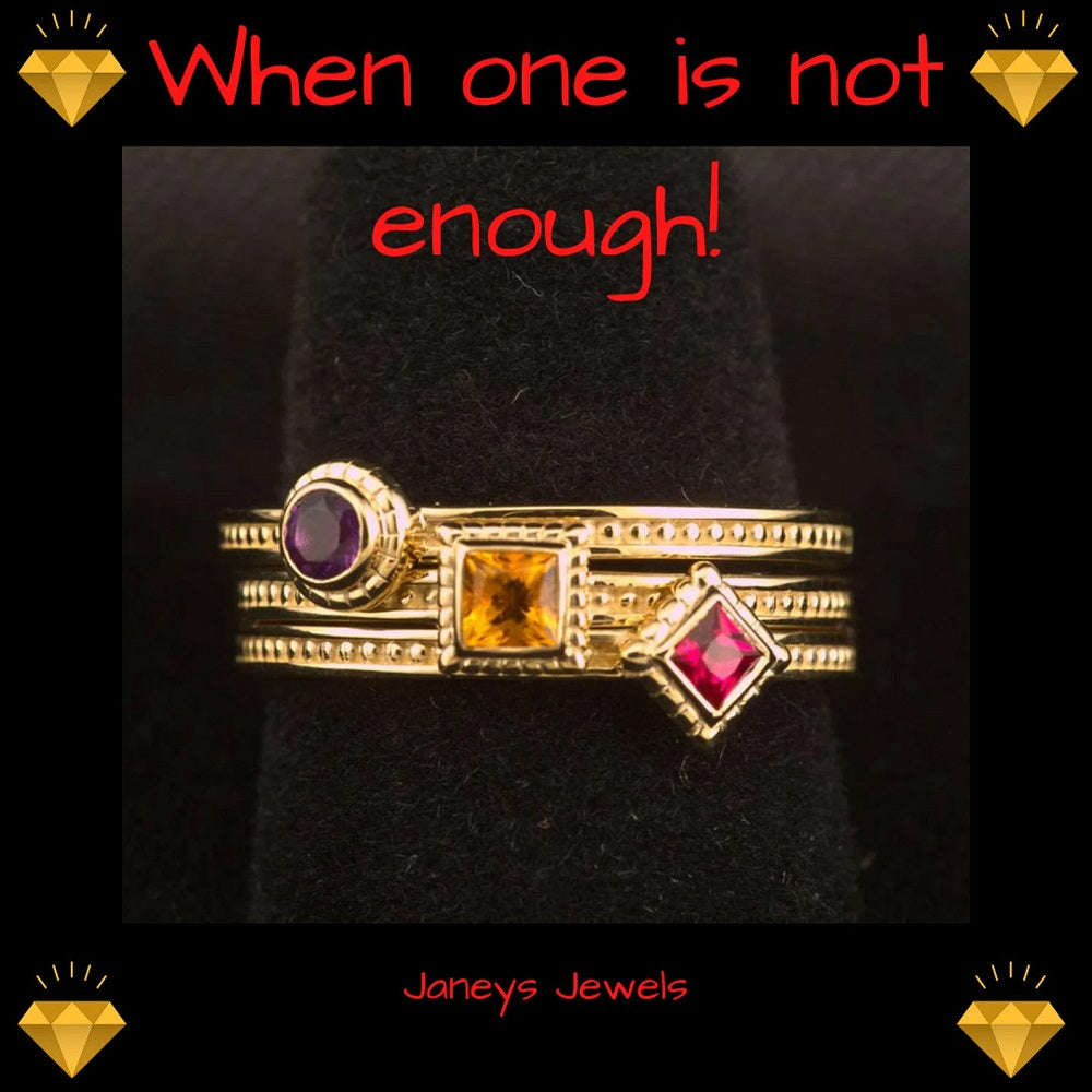 While each ring is a gorgeous stand-alone piece they fit beautiful together and make a knock-out set for a lucky lady! Great gift for Mother or Grandmother & is a very thoughtful and meaningful anniversary gift.