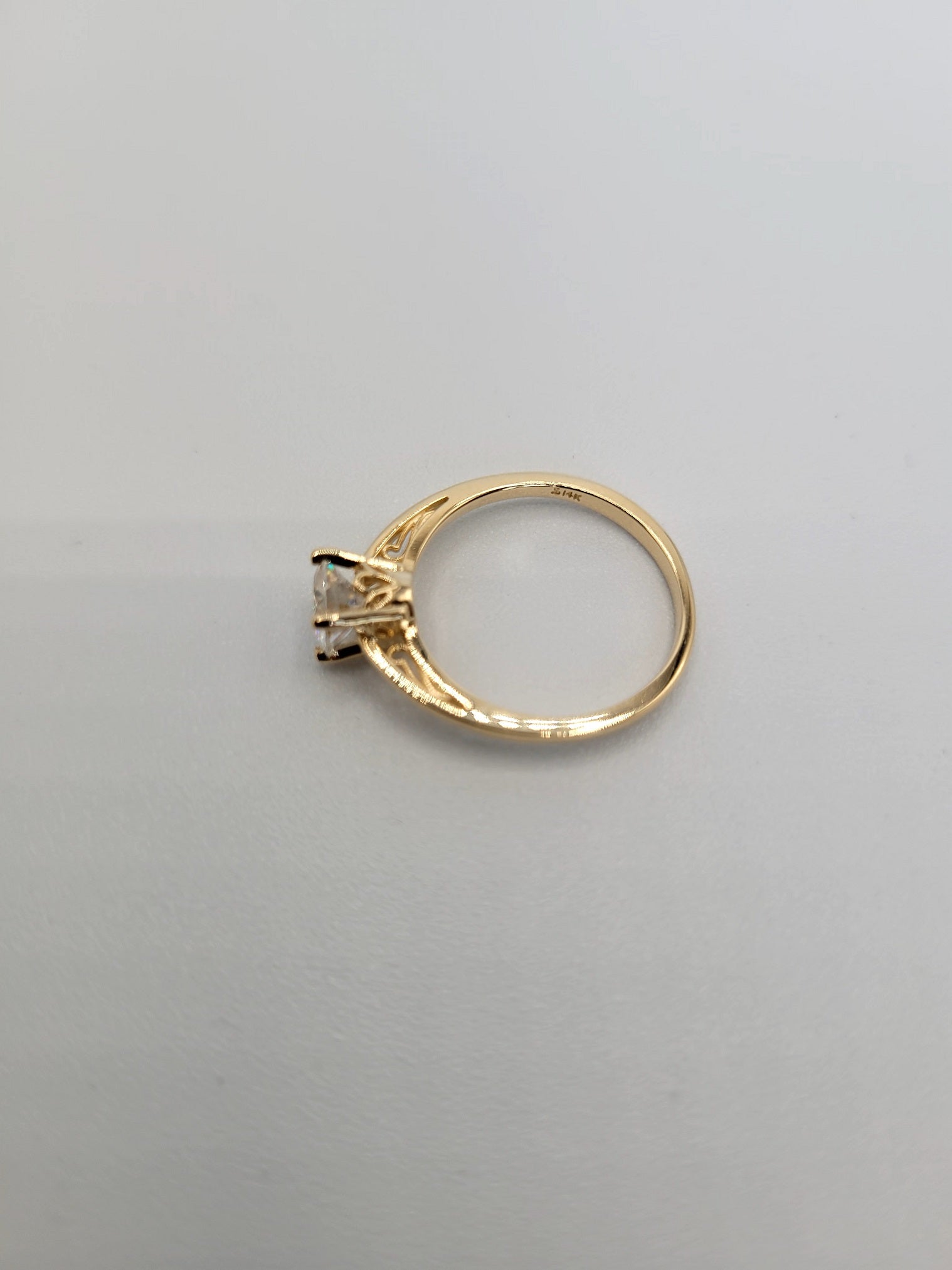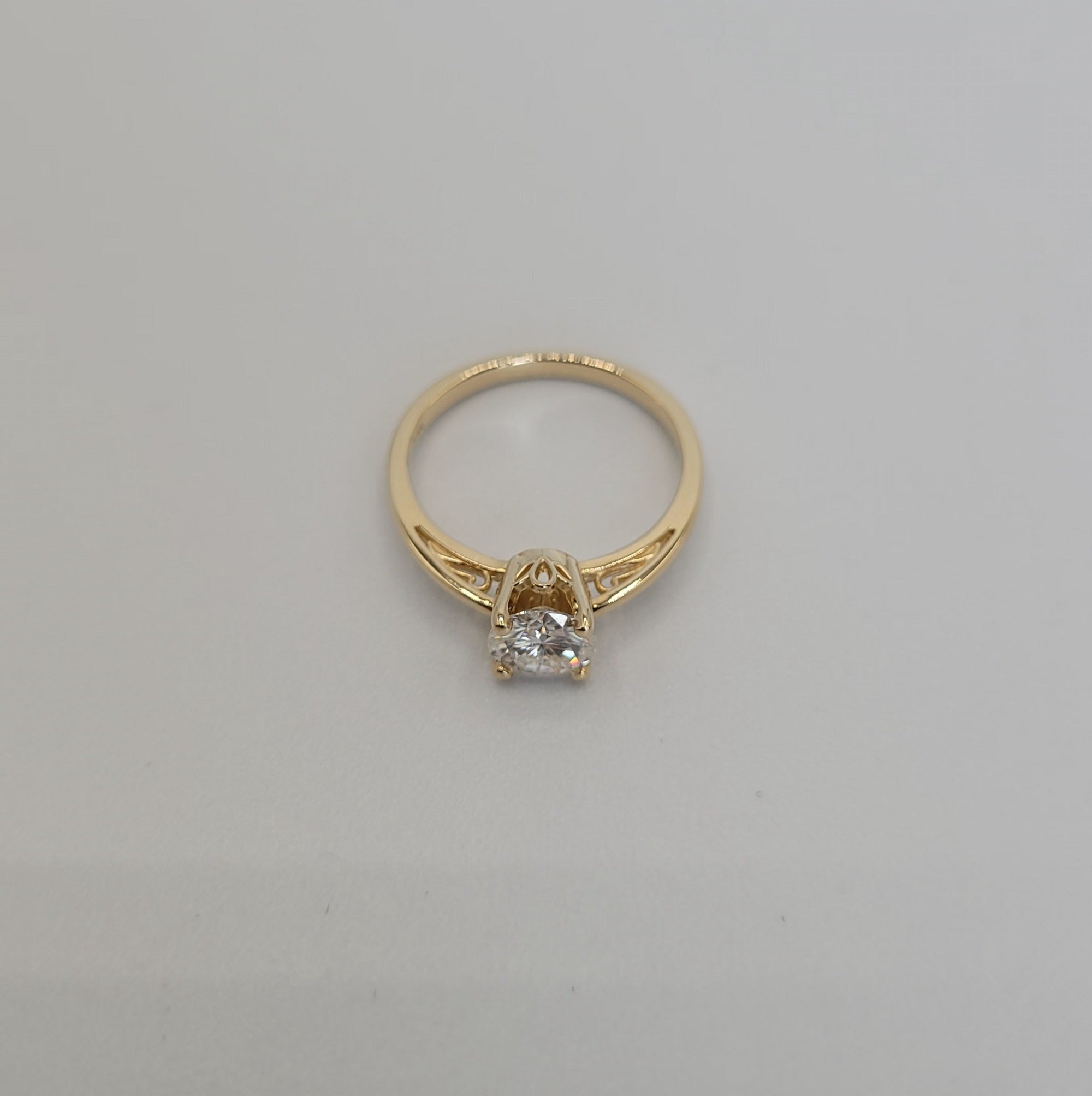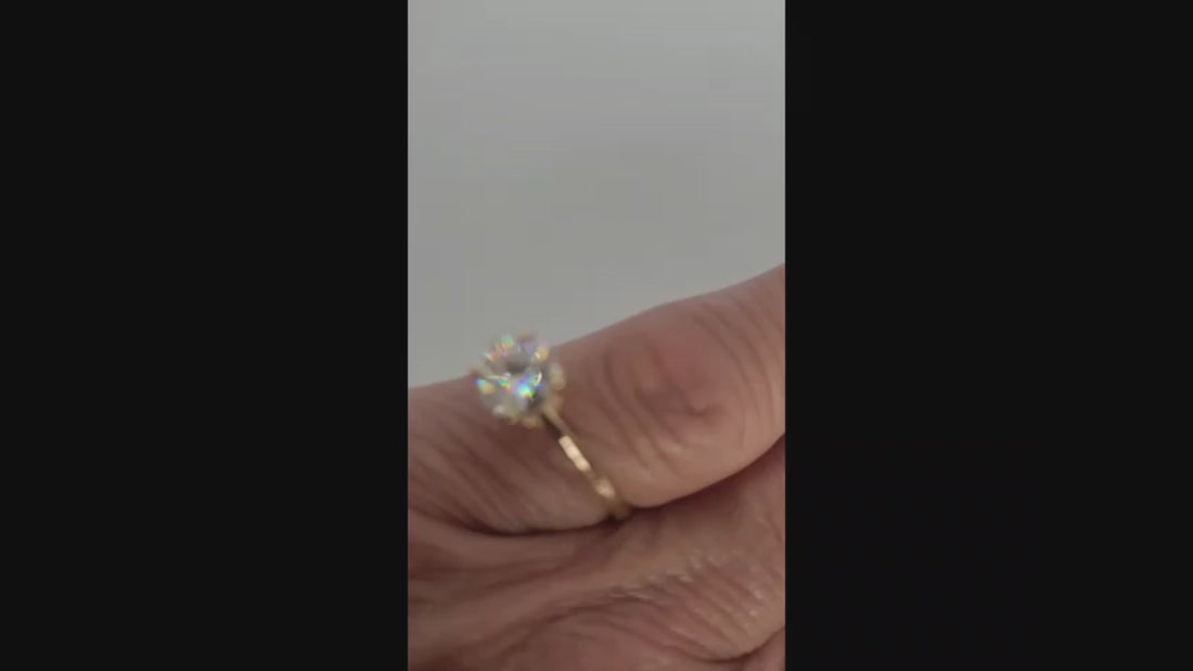 Our 14k gold engagement ring features a 6mm Round Forever One Moissanite Gemstone. Our Moissanite engagement ring is available in your choice of white, yellow or rose gold. The solitaire engagement ring style is a classic, which is evergreen and never goes out of style! This stone is so very brilliant that it blinded my lens and was extremely difficult to photograph.