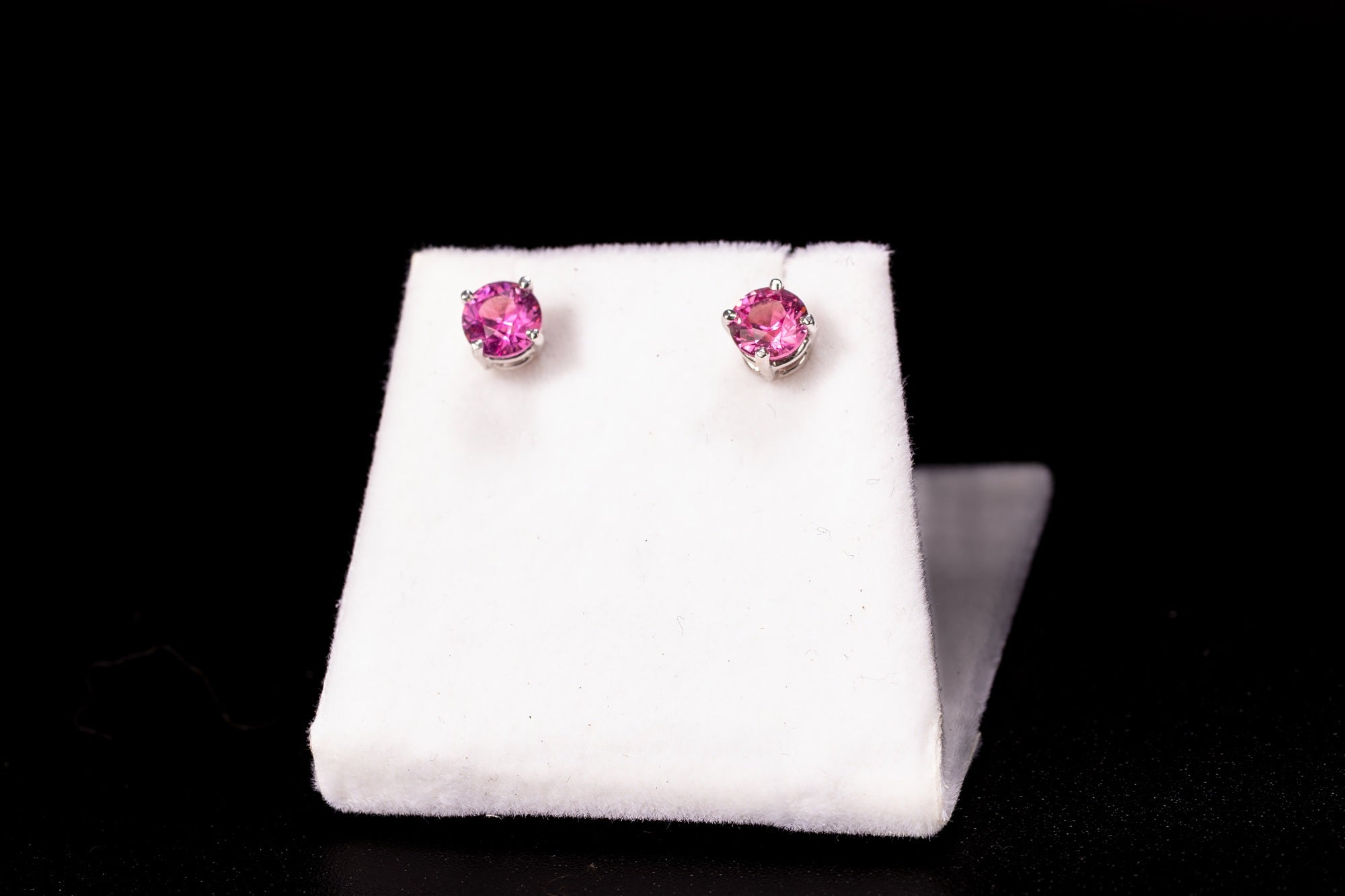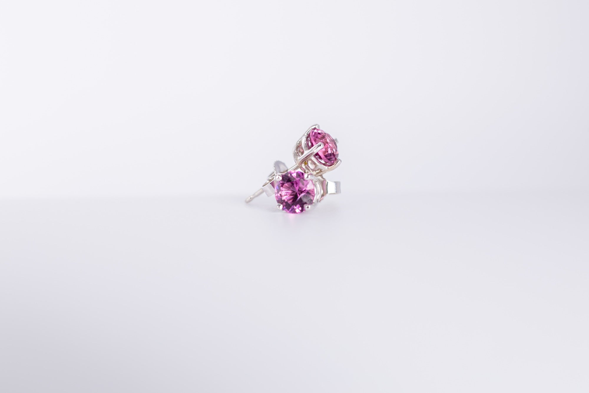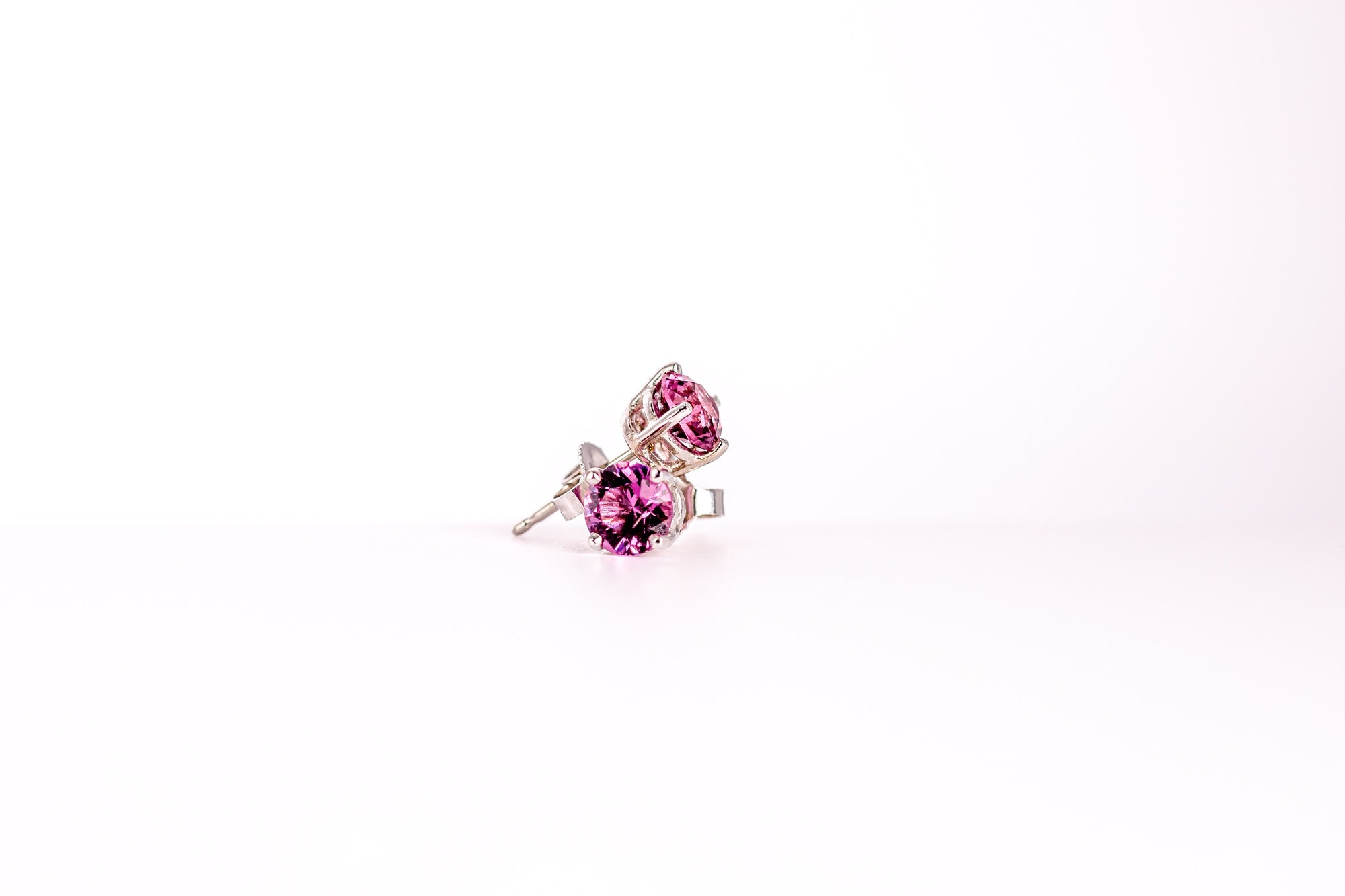 We set them in 14kt white gold studs with a wire box type prong setting, we rhodium plated and used 14kt white gold heavy weight butterfly type backs. Shipping in the US includes insurance.