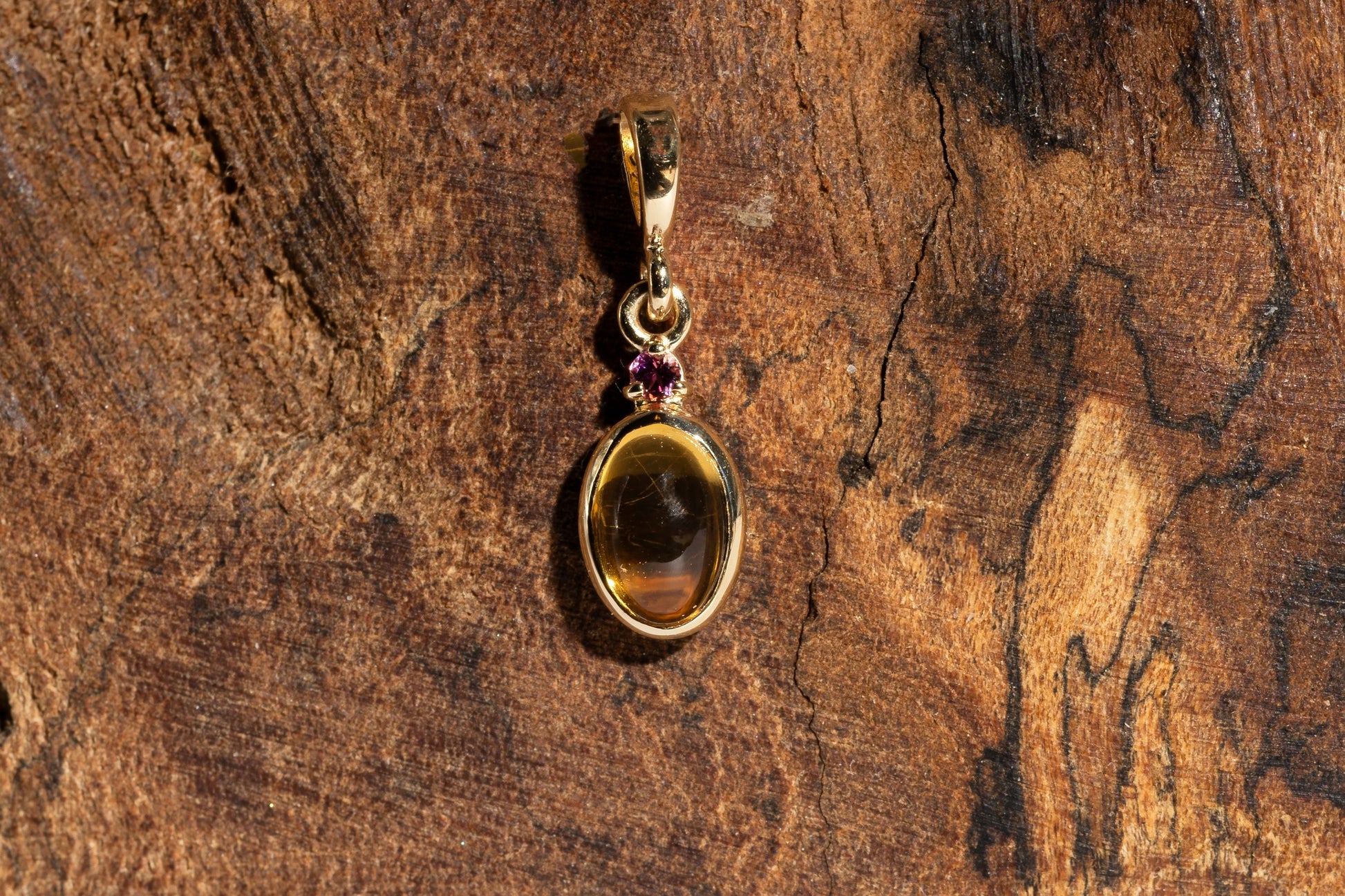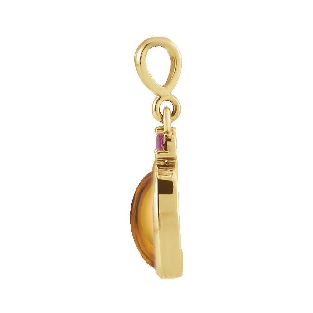 14k Natural Citrine & Pink Tourmaline Pendant, Citrine Charm, November Birthstone