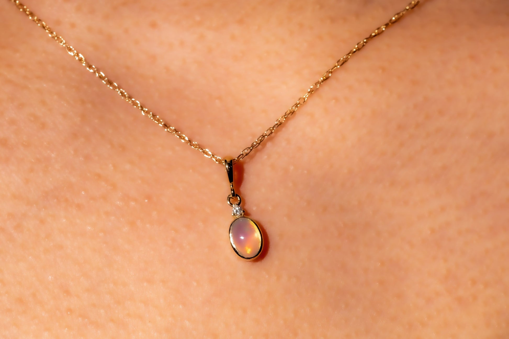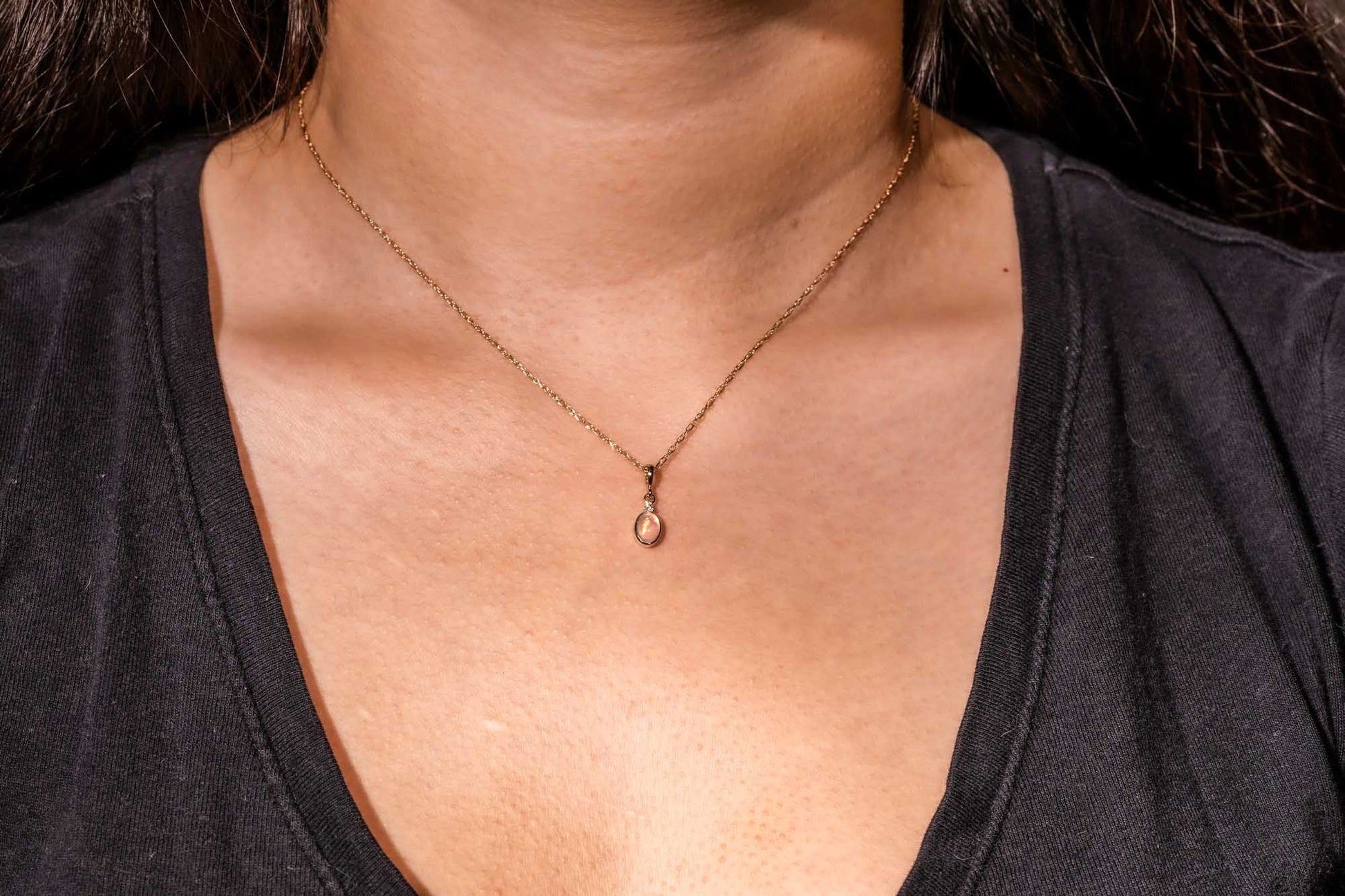 Our gemstone pendant makes a great birthday gift for someone special. Opal is Octobers birthstone. This listing is for the pendant only and does not include the chain, Chain shown for illustration only. See specific details below: