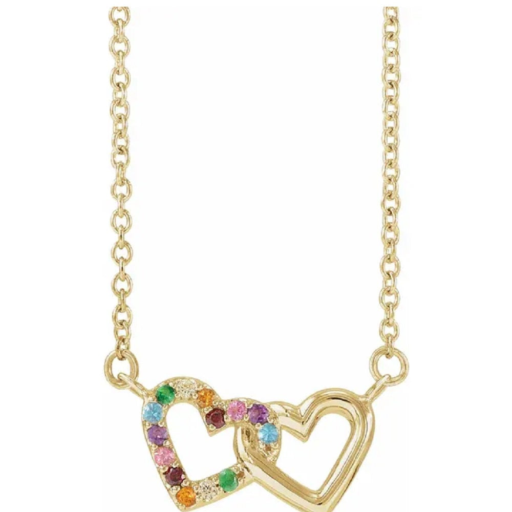 14k Natural Multi-Gemstone Rainbow Double Heart Necklace