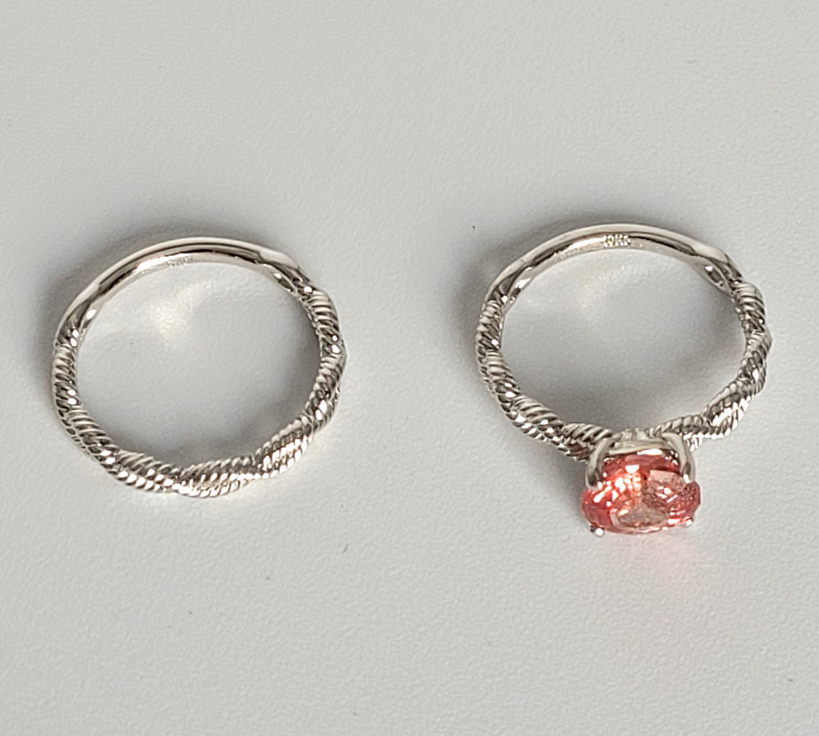 8mm round brilliant cut lab grown Padparadscha sapphires hand cut by my brother and is the last stone he completed before his recent passing. Padparadscha is also know as "orange sapphire"; however, the shade range is actually from pink , peach to orange tinted. Makes a great non-traditional engagement or promise ring. Sapphire is the birthstone for the month of September, making this the perfect birthday gift for someone special!