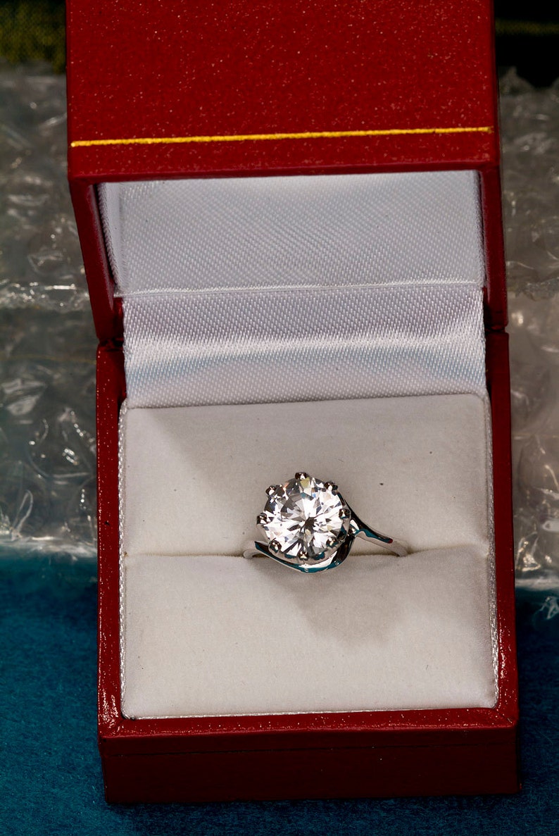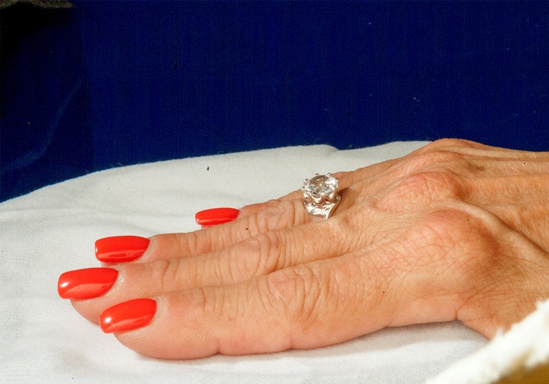 Our 3 Carat White sapphire unique engagement ring is a solitaire ring style. 14kt White Gold Custom made 8 Prong Edwardian style, Crown design ring with the setting head securely holding the gemstone.. We believe this is a great alternative to the traditional diamond engagement and an incredible value for a ring that will last a lifetime. * A note about lab created gemstones: Lab created stones are identical to natural gemstones in every way (same optical and physical properties) except price!