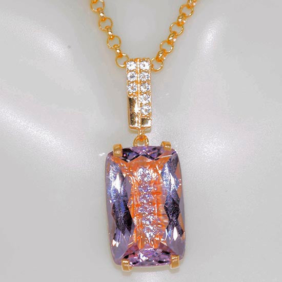 6.8 Carat Pink Amethyst & White Topaz Necklace in God Vermeil