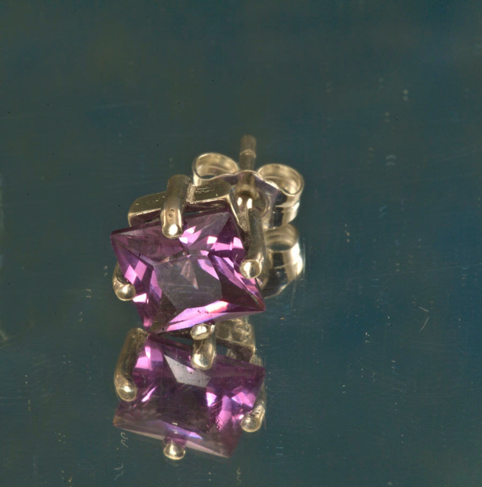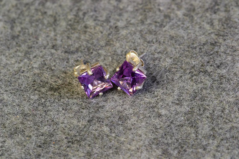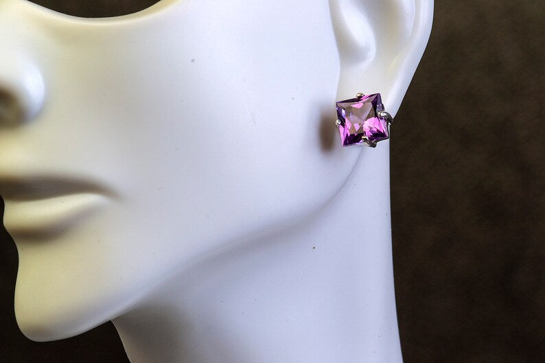 Art Deco style earrings featuring color-changing Alexandrite's are impressive and they will most definitely get noticed! Our gemstone studs feature gorgeous Lab Alexandrite Princess/Square Cut Gems and are set in the stud earrings. These are not for the shy, as they are a bold jewelry statement earrings! Great friend birthday gift! A very meaningful gift for anyone born in June, as Alexandrite is the June birthstone. The custom made open box setting features is minimalist in design, allowing the gems to shine. The prongs were made thick to hold the stones securely. The closures are butterfly type. The open setting lets in tons of light to the stone and allows it to reflect brilliance back to the eye. ♡ STONE DETAILS: ♡ Please note: This is a Made to Order Item. Please allow for 14-21 days order processing time. |