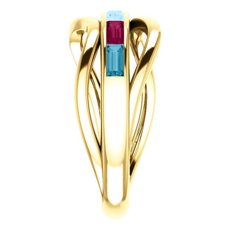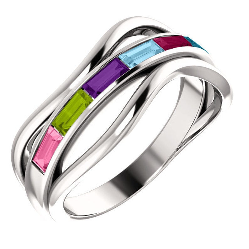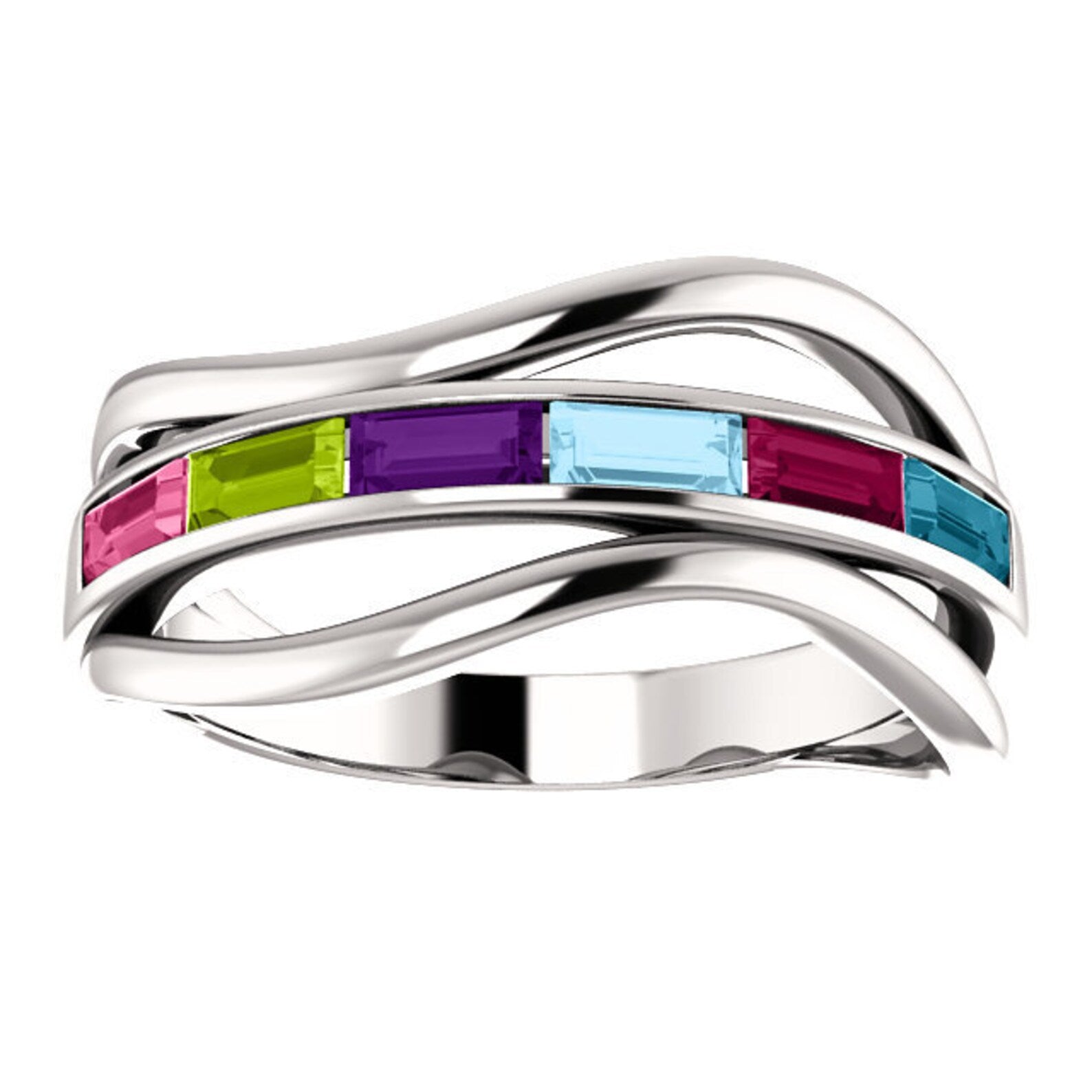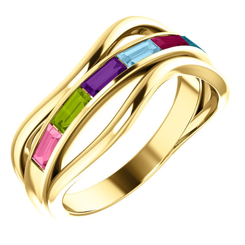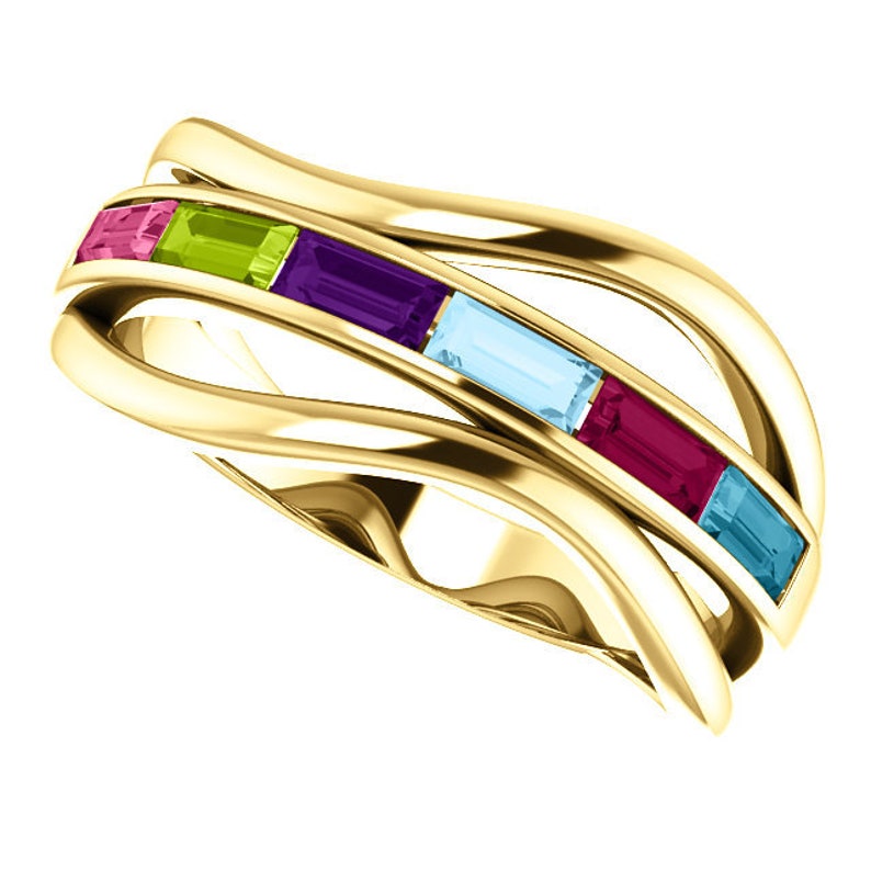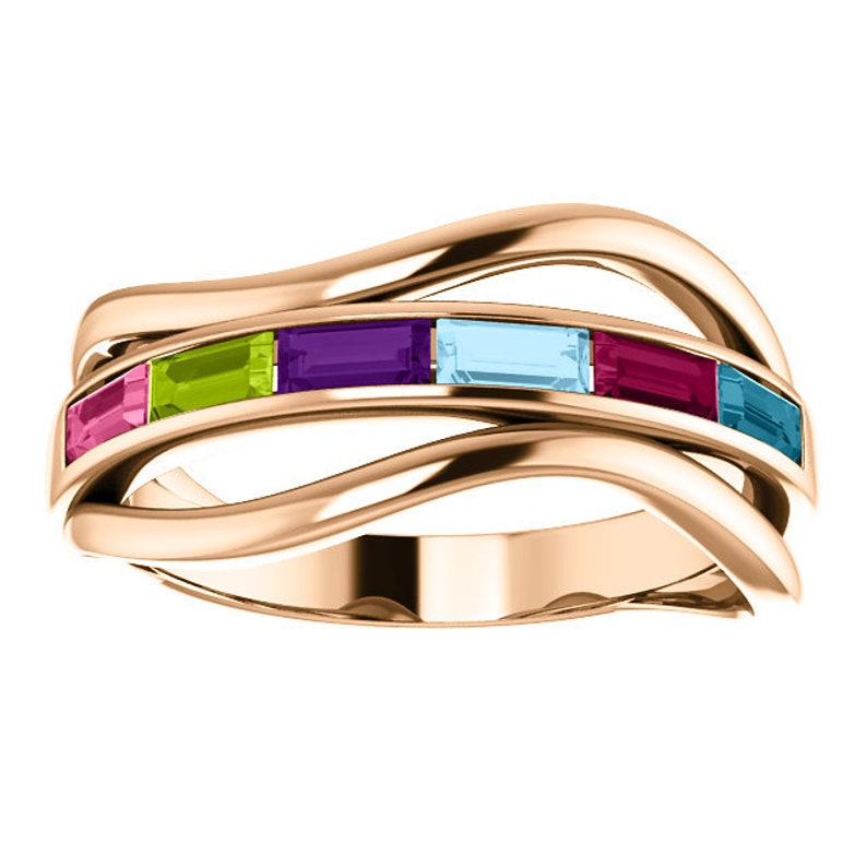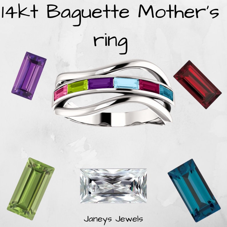 14k Gold Multi-Color Baguette Ring, Modern Mother's Ring in white, rose or yellow gold
