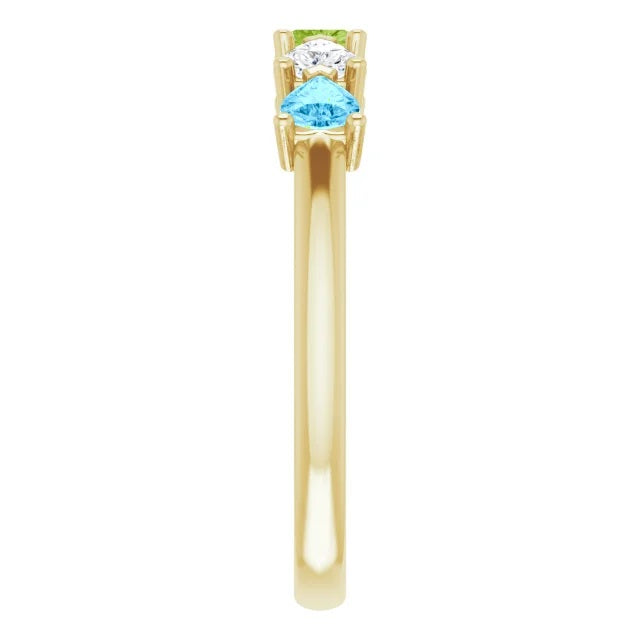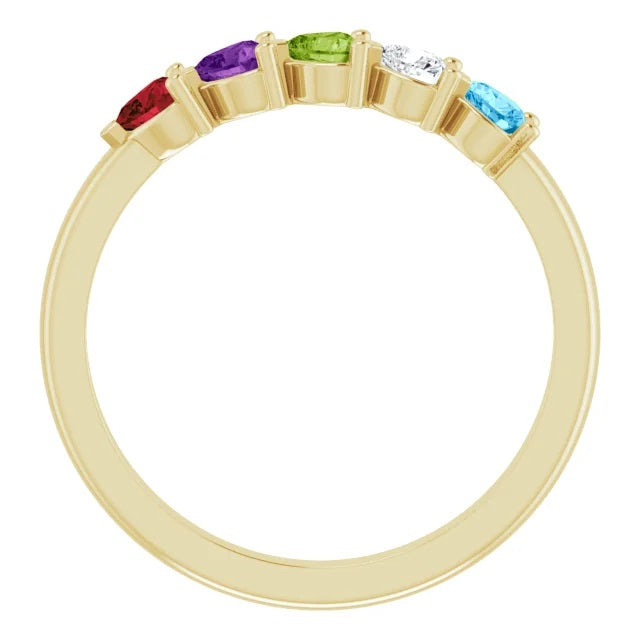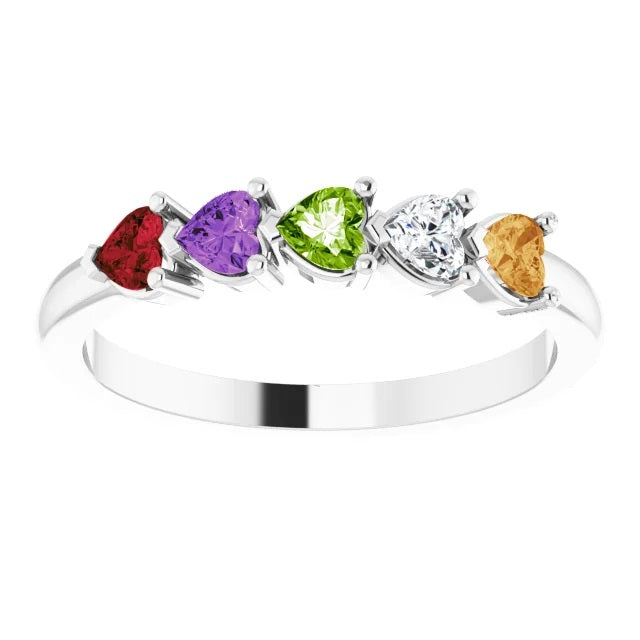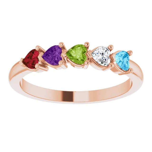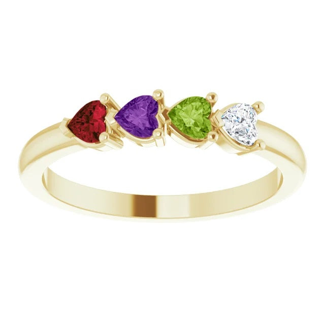 14k Gold Heart Shape Multi-Gemstone Mothers Ring, Family Birthstone Ring