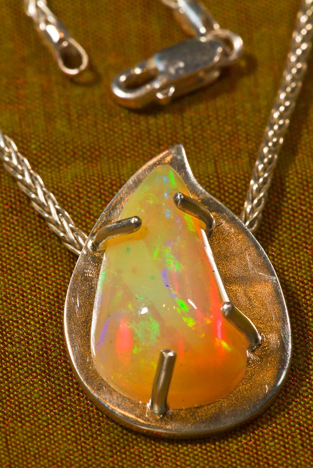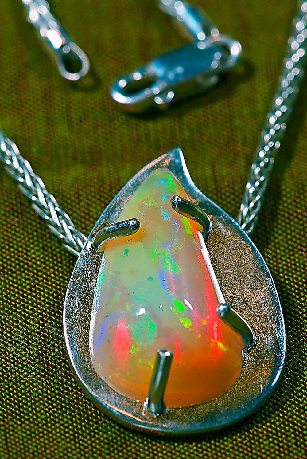 Beautiful color display in our one-of-a-kind statement or layering necklace, which is a hand carved teardrop free form, Precious Crystal White Opal! We hand carved & polished this 6.39 carat AAA grade precious gem. This is a natural, un-treated opal. A very meaningful jewelry gift for anyone born in October, as Opal is the October birthstone. Also the perfect gift for a Libra.