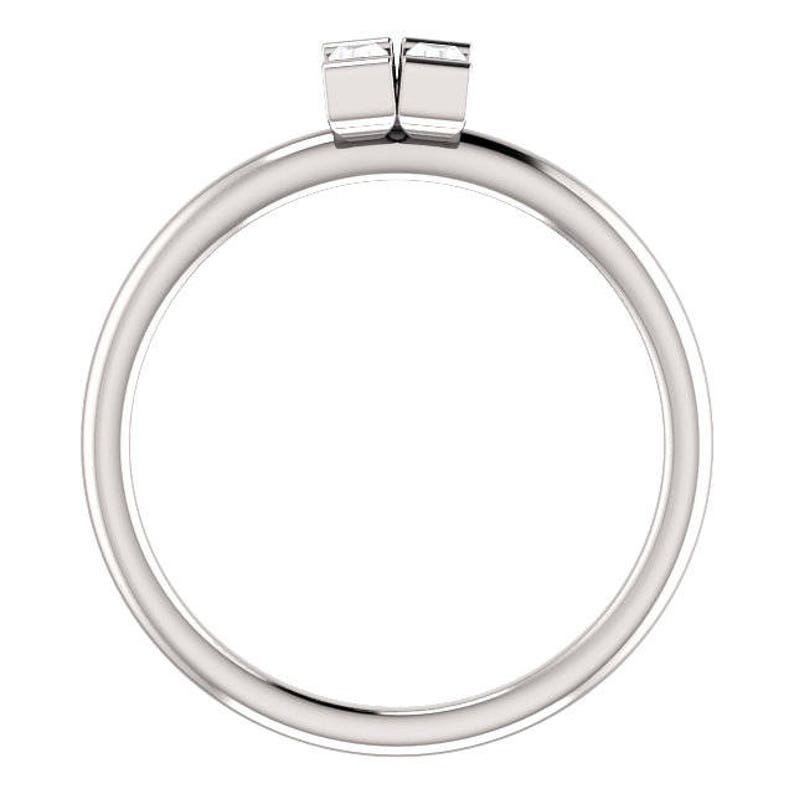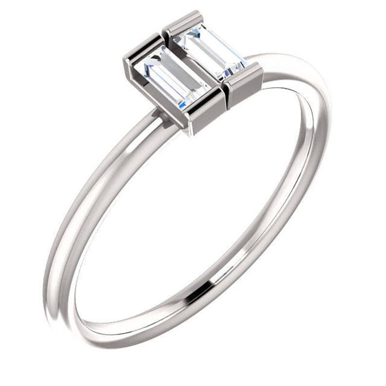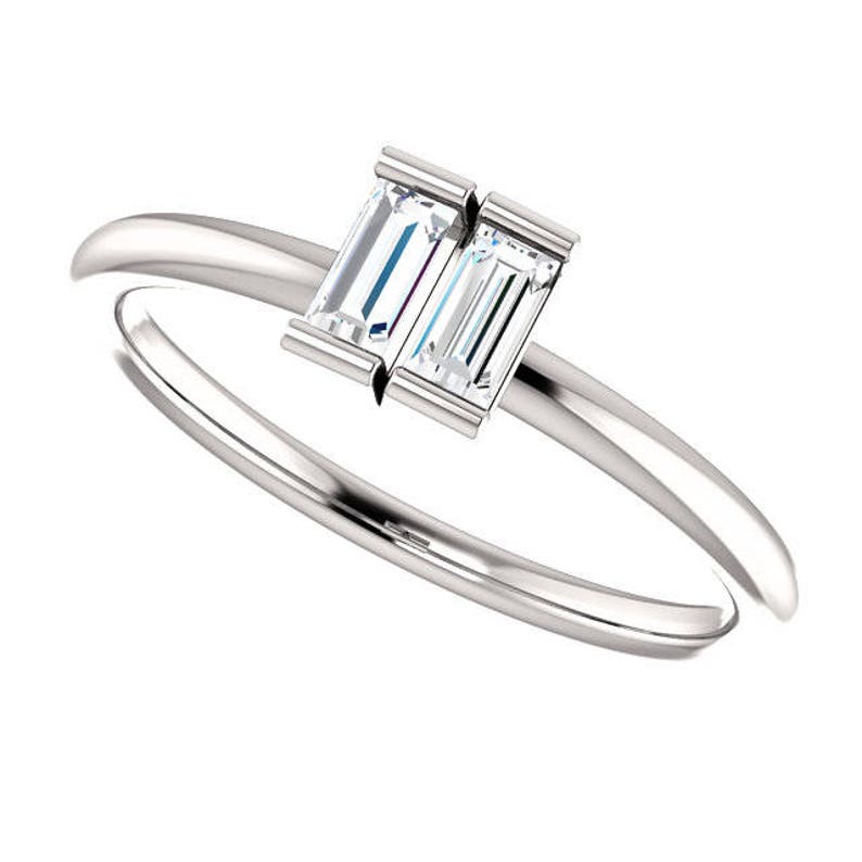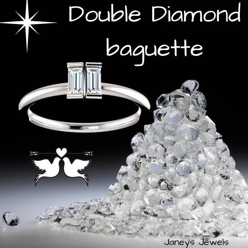 Our dainty diamond double baguette engagement ring is made in a simple engagement ring style. It is modern, dainty, minimalist for those who don't want all the fuss! Perfect Promise ring , birthday gift or any occasion gift! 14kt white gold with 2 diamonds in the baguette cut, which are bright and white. We are happy to see this cut that was very popular in the Art Deco period come back into style. The baguette cut is more costly than other standard cuts since it is very labor intensive and for this reason it fell out of favor.