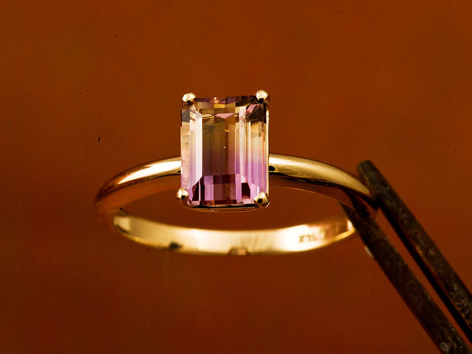 Emerald Cut Ametrine Ring in 14k Gold, Gemstone Engagement Ring