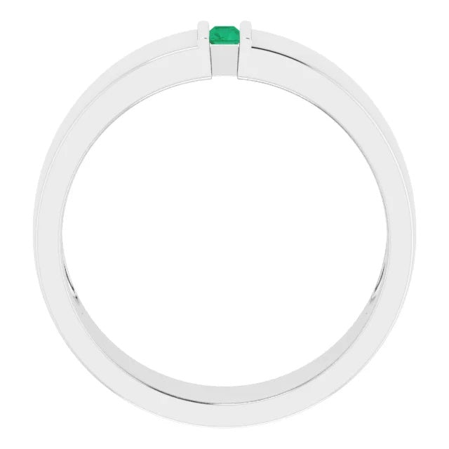 Mens Emerald Ring in Fine Silver