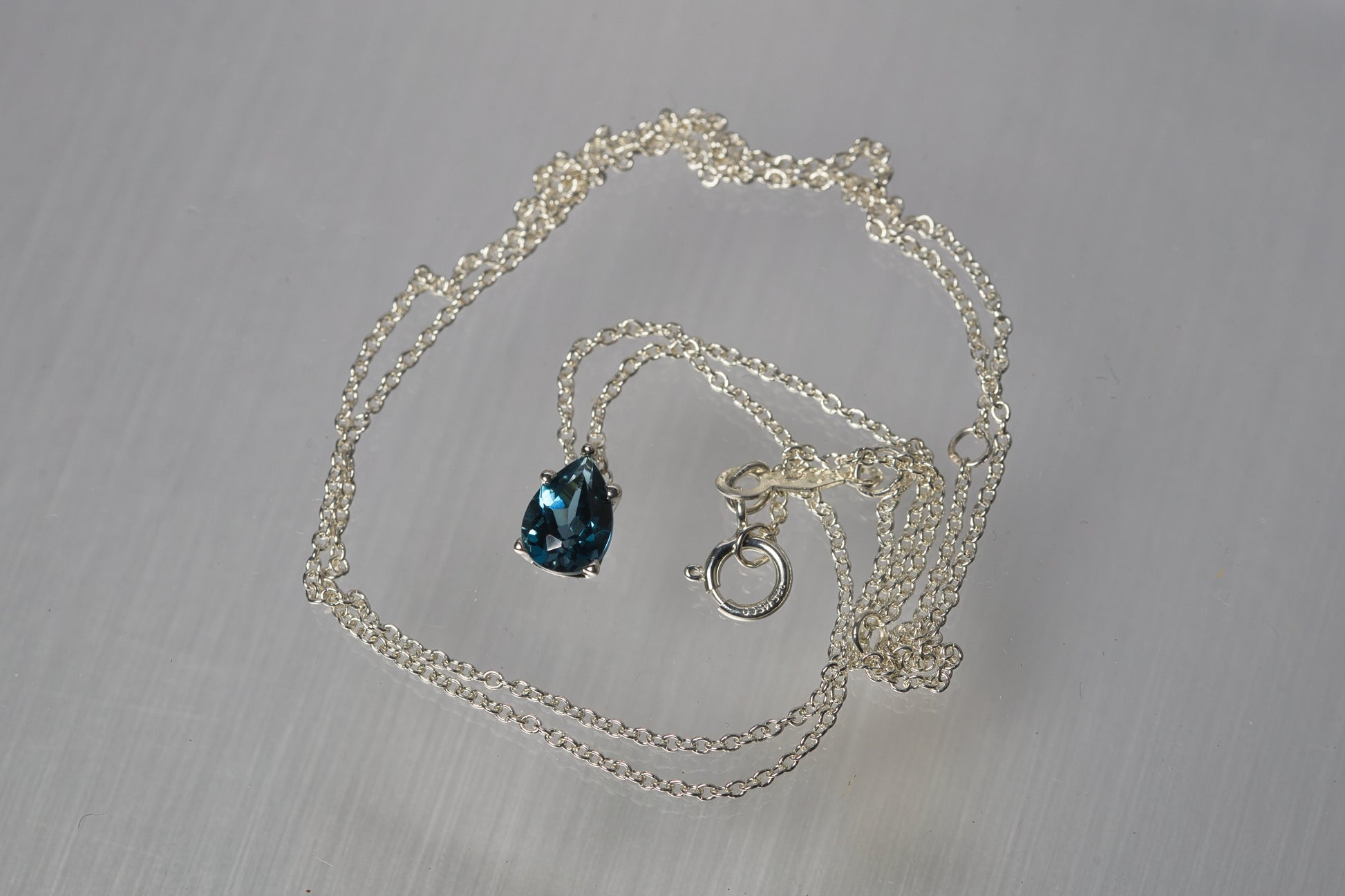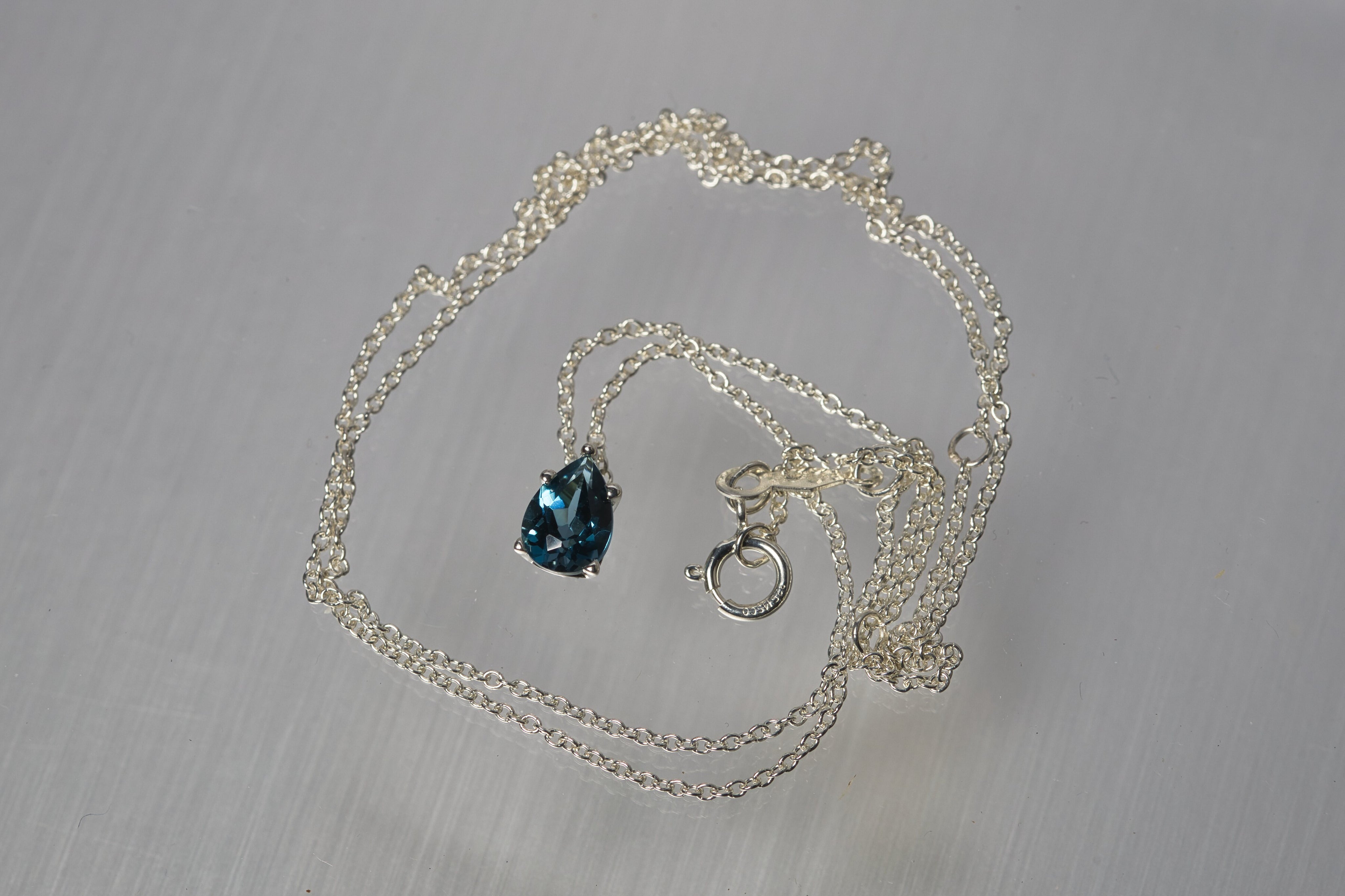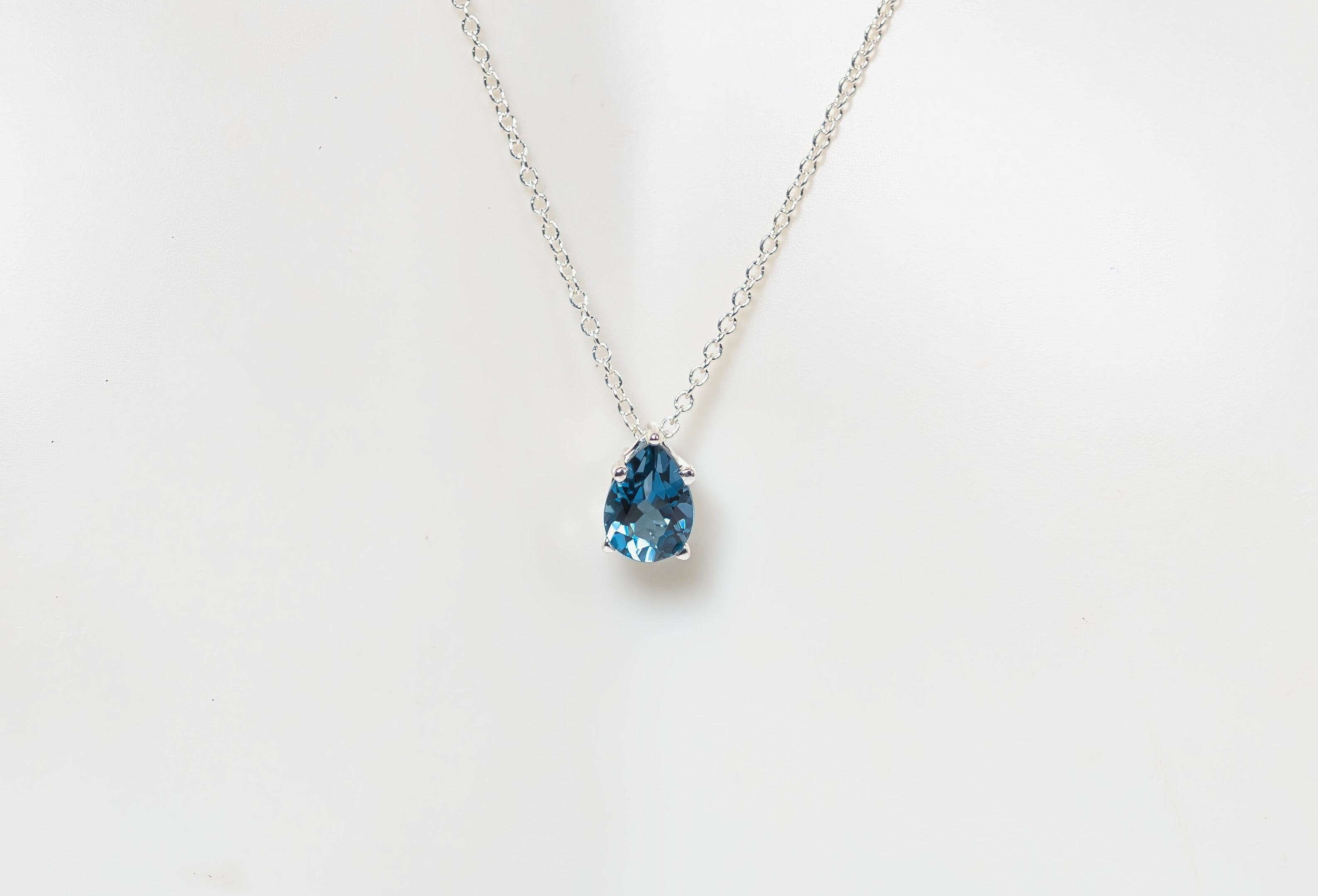 Natural London Blue Topaz Silver Birthstone Necklace, Gemstone Necklace