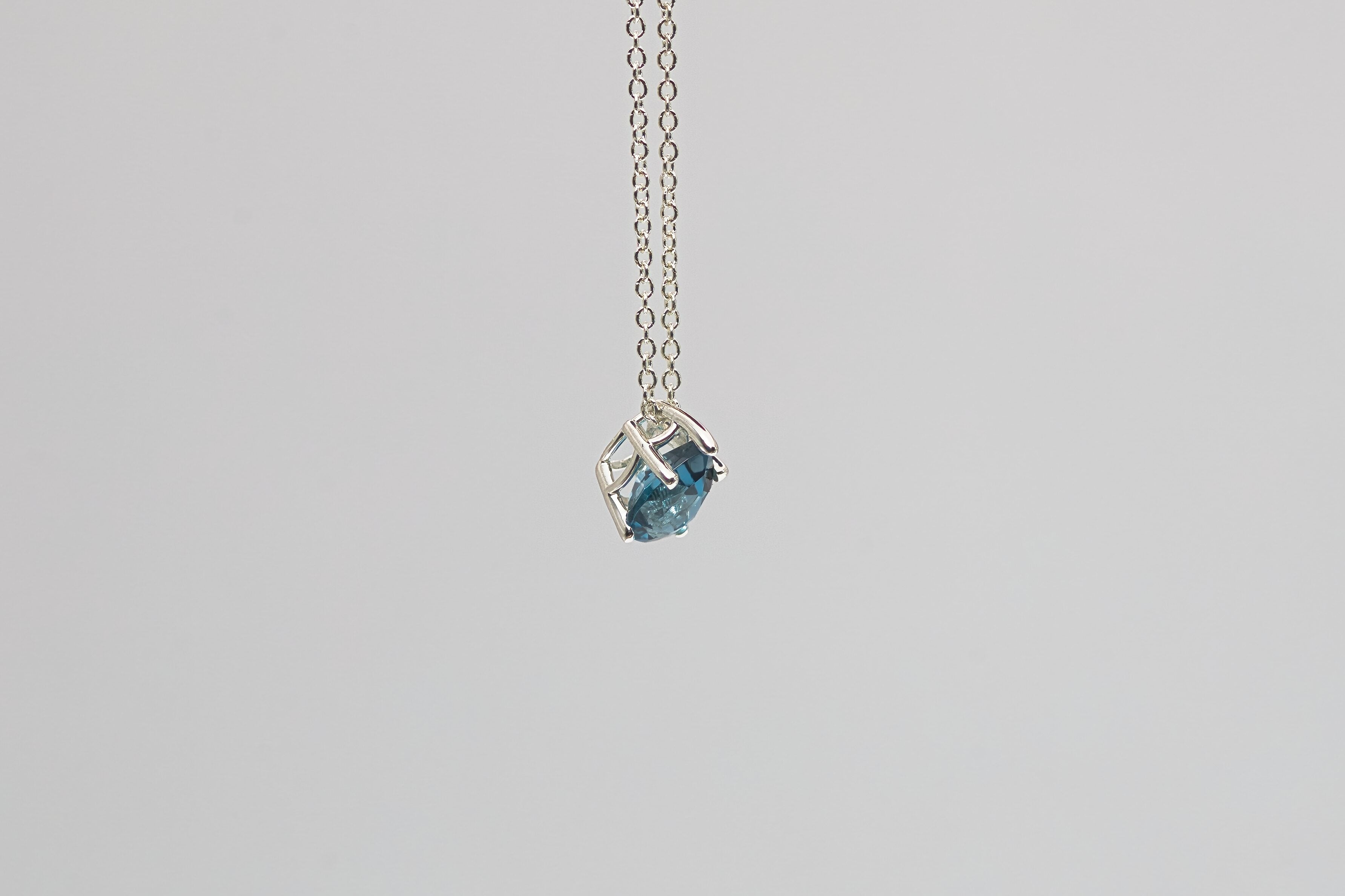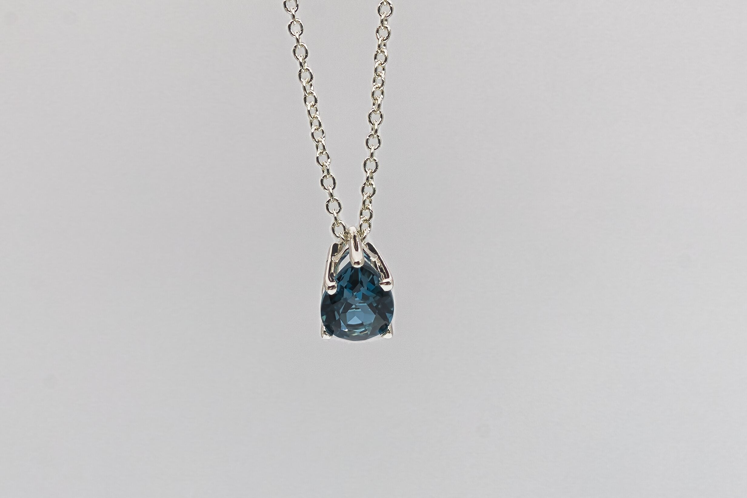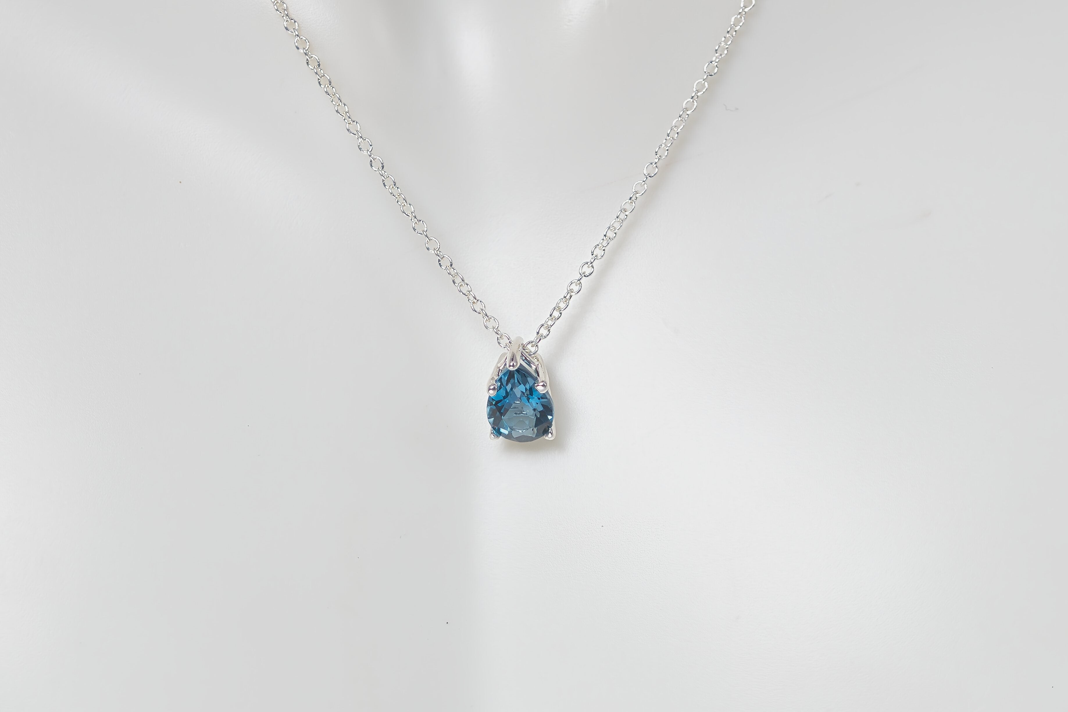 Natural London Blue Topaz Silver Birthstone Necklace, Gemstone Necklace