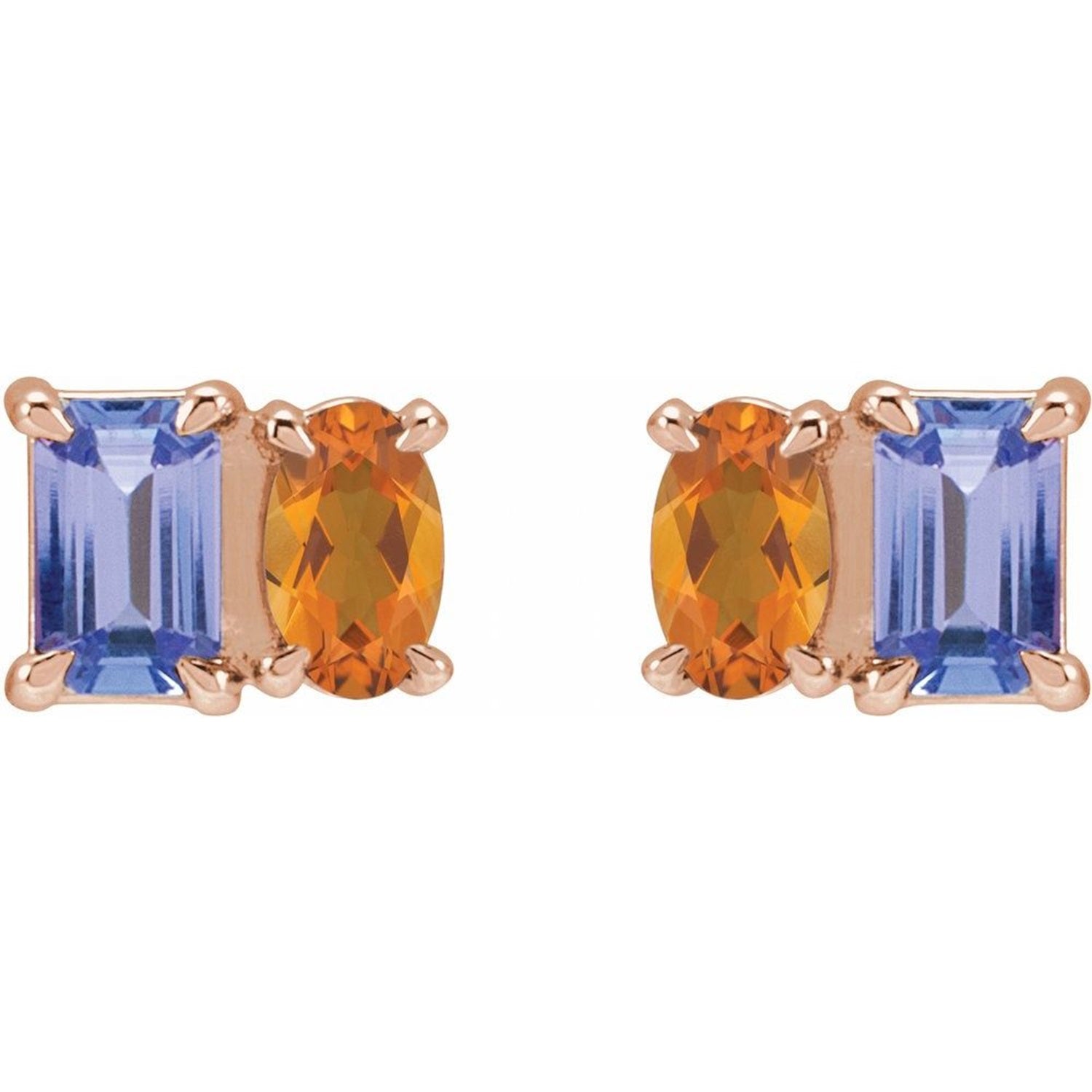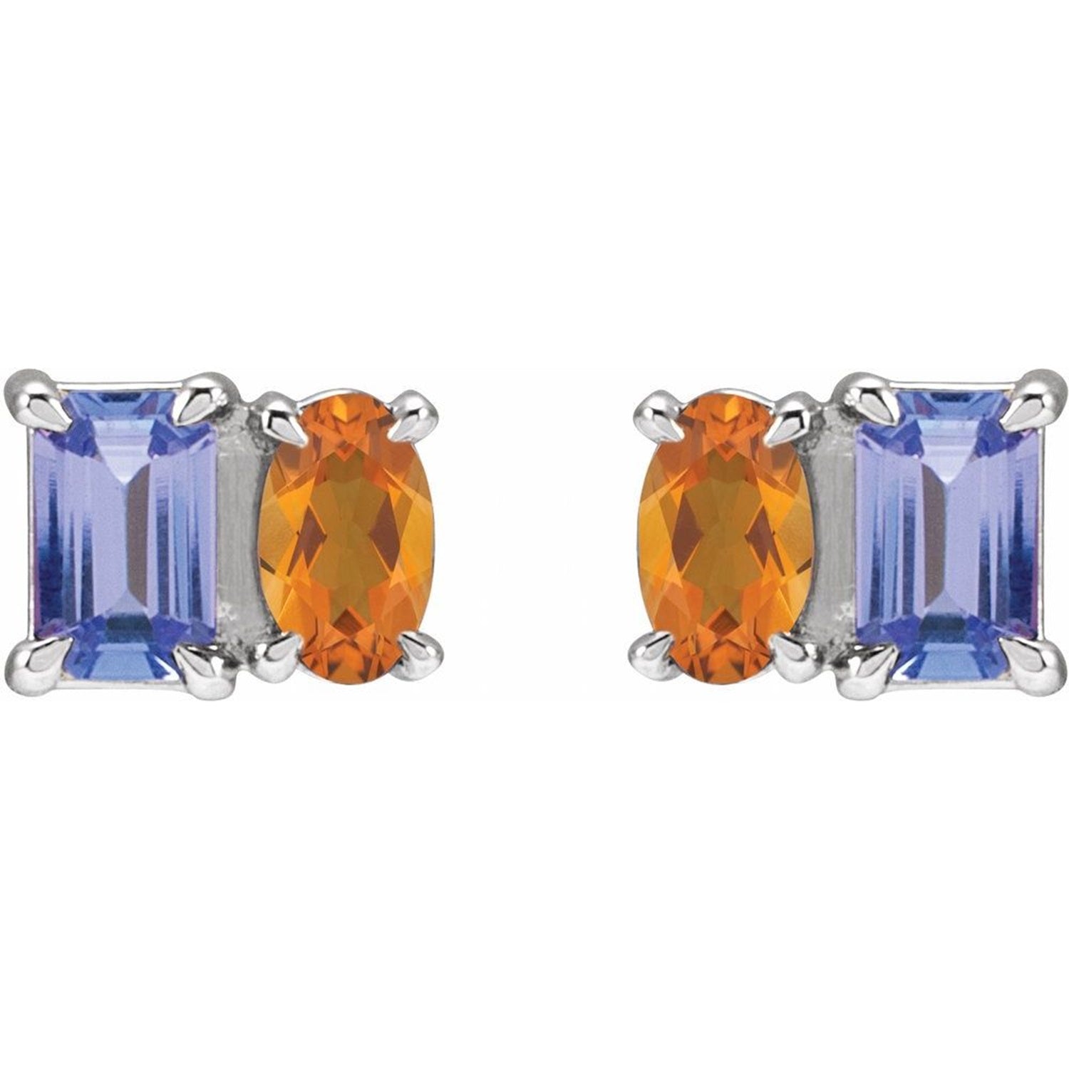 Natural Tanzanite & Natural Citrine 2 Stone Stud Earrings, Birthstone Earrings, Gemstone Earrings