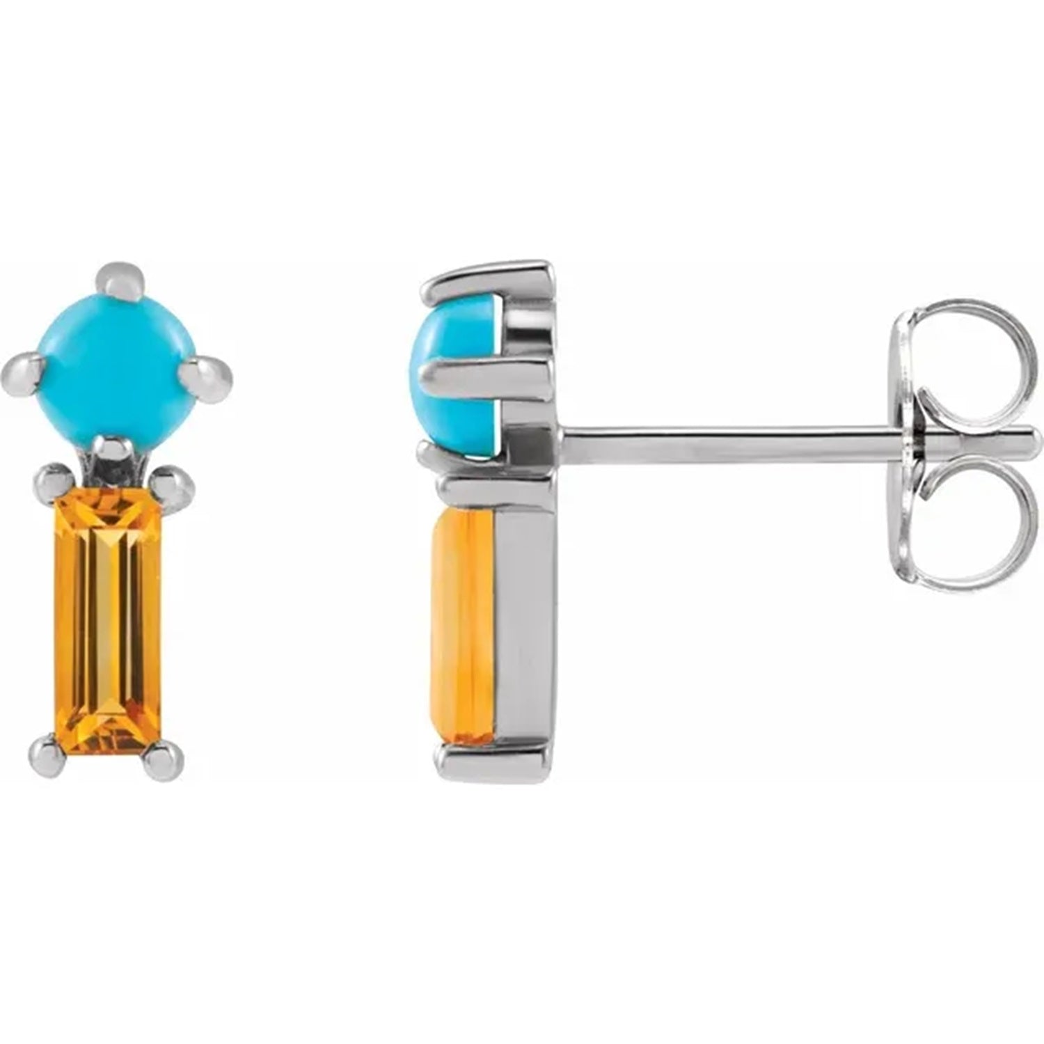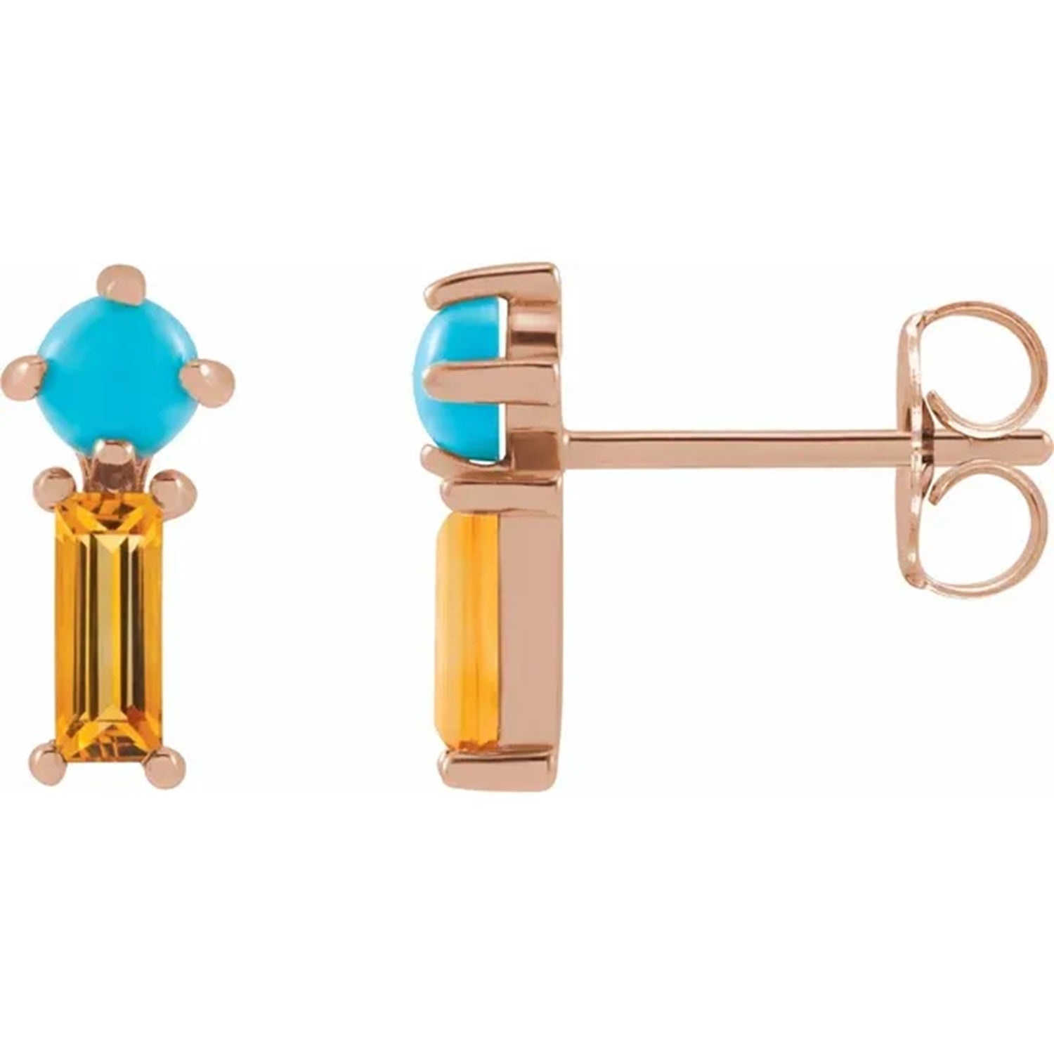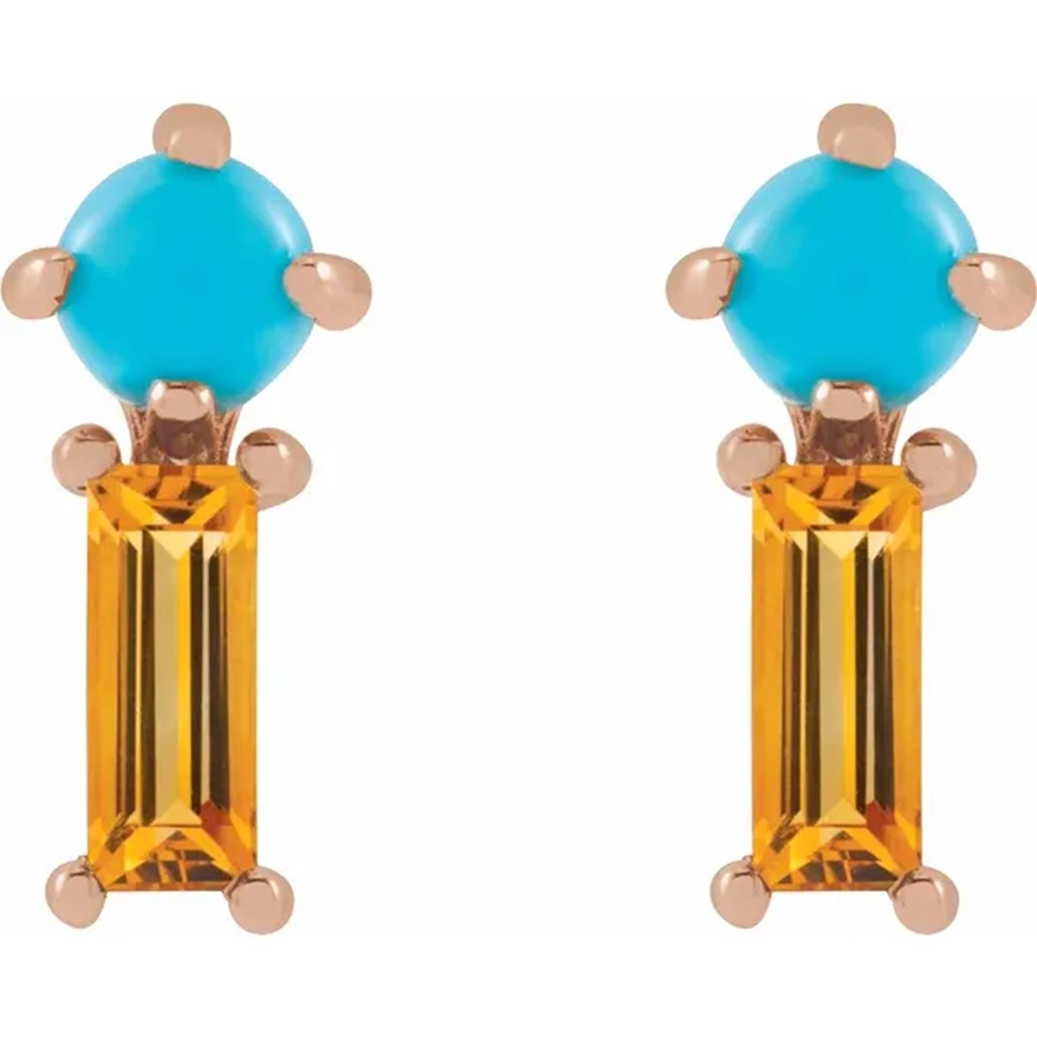 Gemstone size: 3 mm round cabochon cut, natural turquoise & 5x2mm, AA Natural Citrine - Straight Baguette Step-Cut