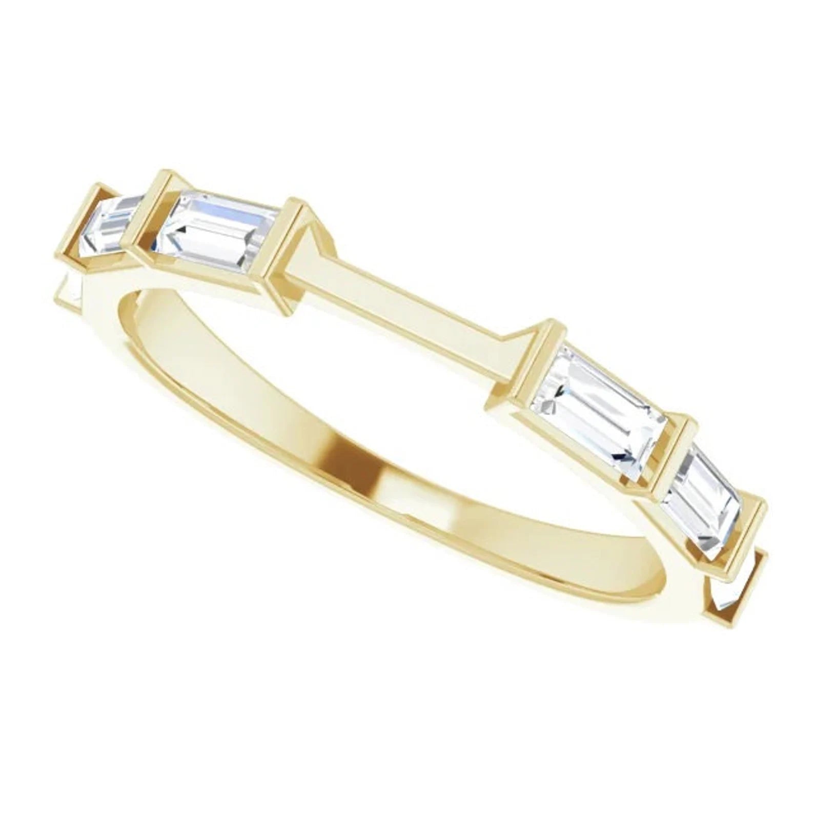 14k Gold Natural White Sapphire Wedding Band, Baguette Wedding Band