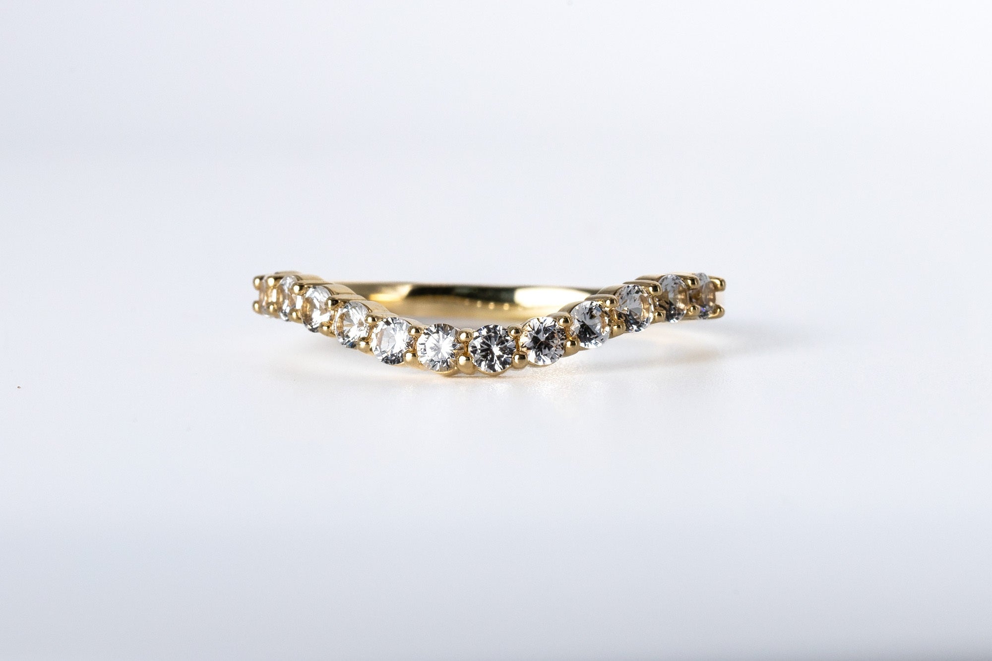 Natural White Sapphire Wedding Band, Free form Band, Yellow Gold Band