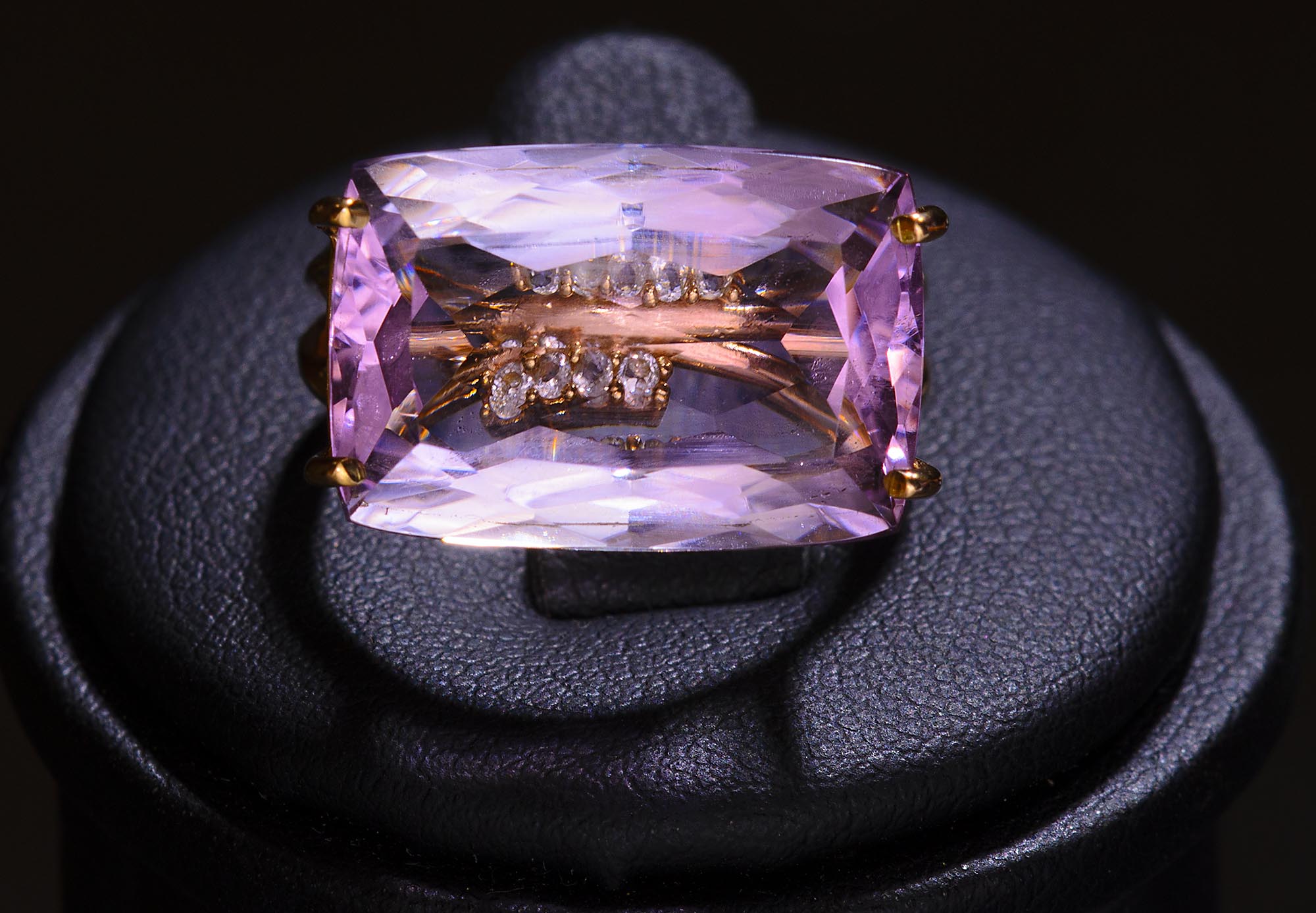 Transparenza is Spanish for transparent. Unique statement or cocktail ring features specialty cut rectangular pink amethyst gemstone, that is east-west set in the ring. The east-west settings are a way to modernize a style, creating a very contemporary look and feel! The amethyst gem is transparent in the center to reveal the surprise of the white topaz gems set on the top of the setting. If you are looking for something unique and different...look no further! This ring is stunning!