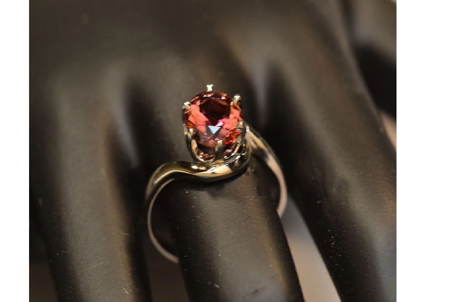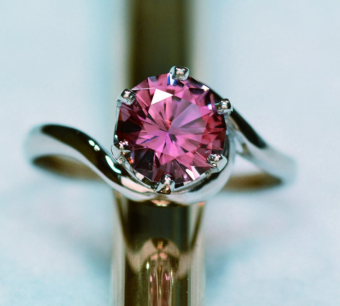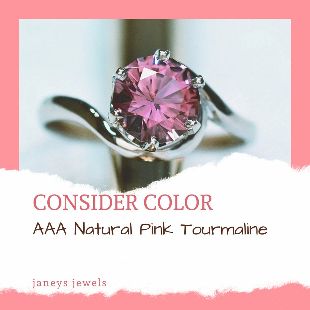 Pink Tourmaline engagement ring in a classic design has gorgeous color and clarity! A one-of-a-kind, unique engagement ring and lovely gemstone ring! The Rubelite (Red Tourmaline) 7mm round faceted gemstone was hand-cut by us! 1.24 carats of purplish-pink color is a great alternative to the traditional diamond engagement ring or Promise ring. A very meaningful Jewelry gift for anyone born in October, as it is the October birthstone.