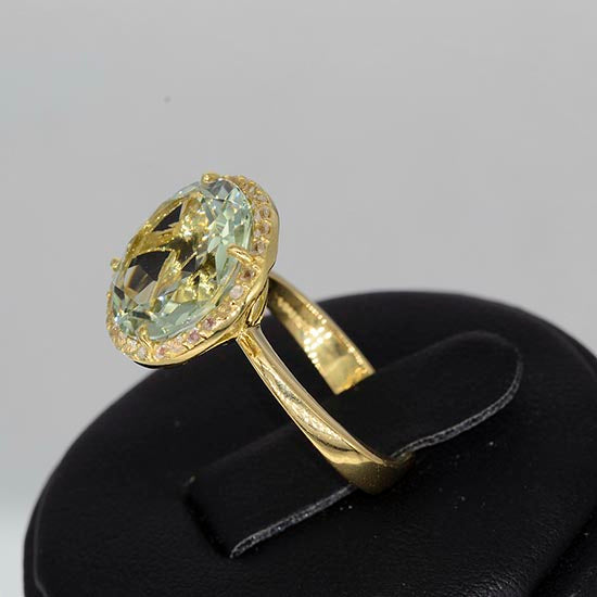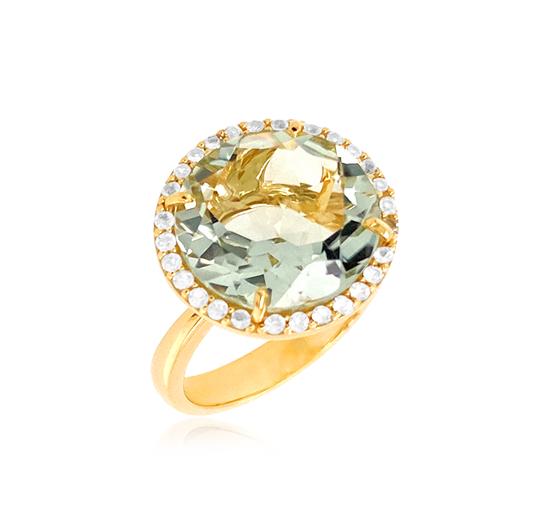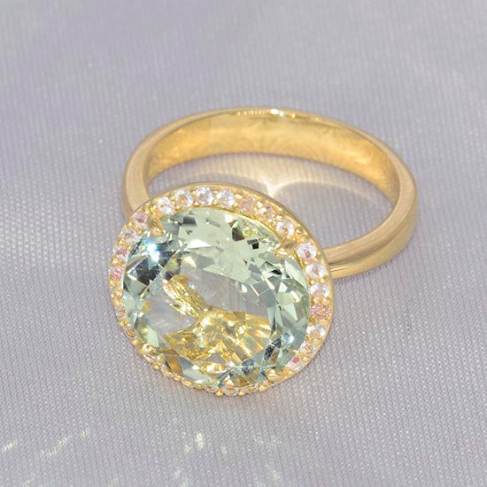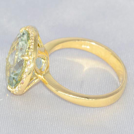Prasiolite-Green Amethyst & White Topaz 6 Carats Halo Statement Ring