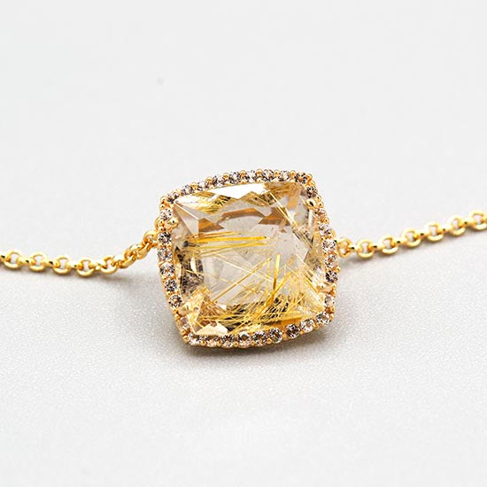Rutilated Quartz Gemstone Statement Necklace in Yellow Gold