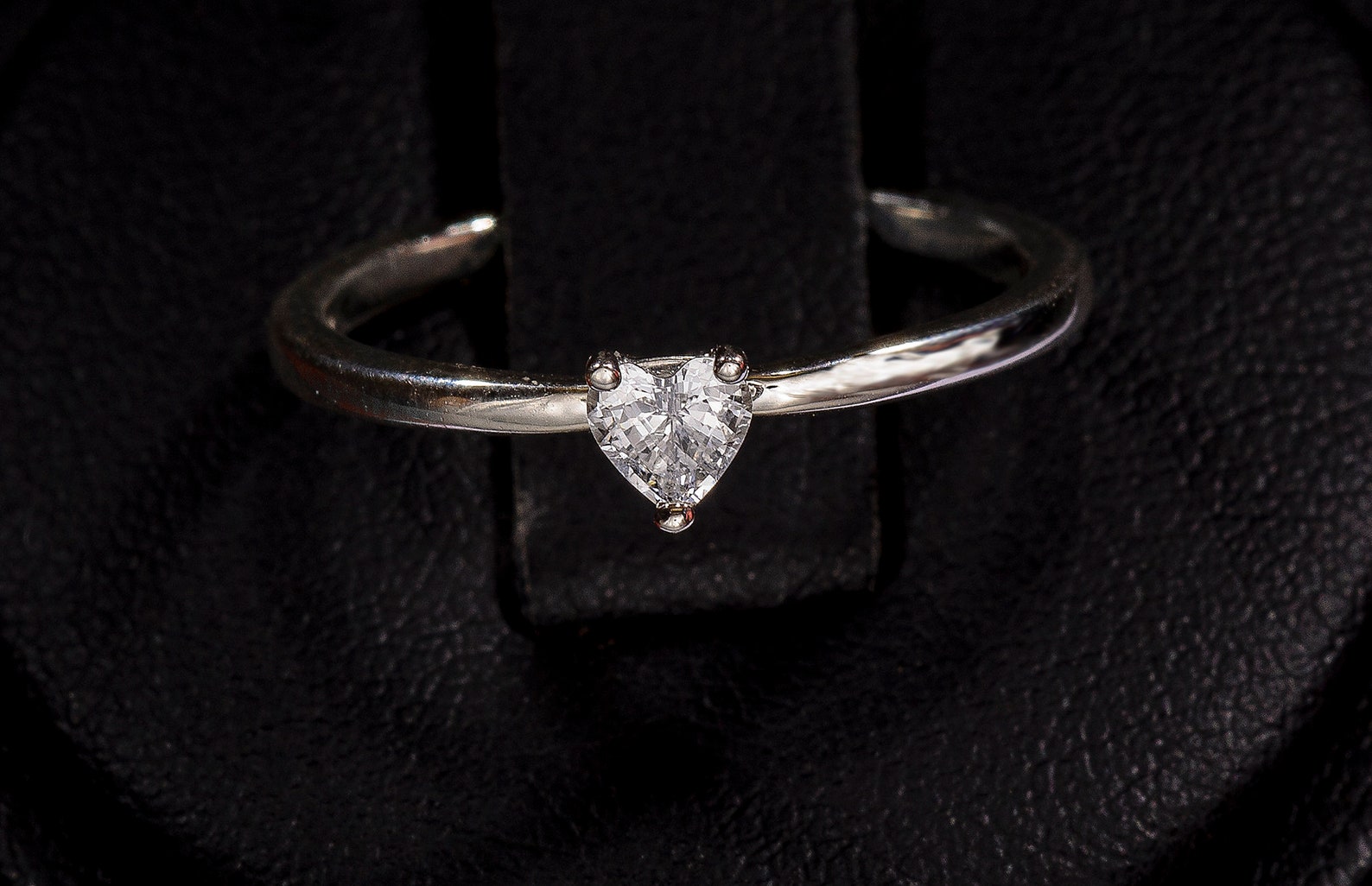 White Sapphire Engagement Ring, Heart Ring, Silver Promise Ring