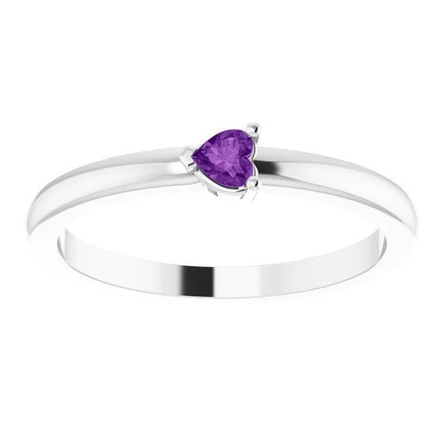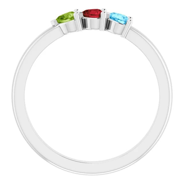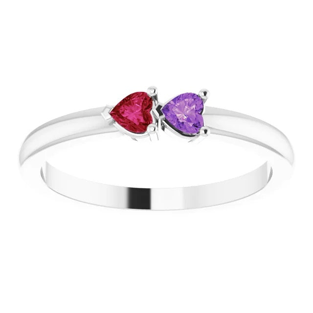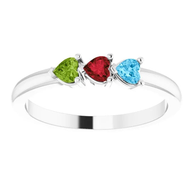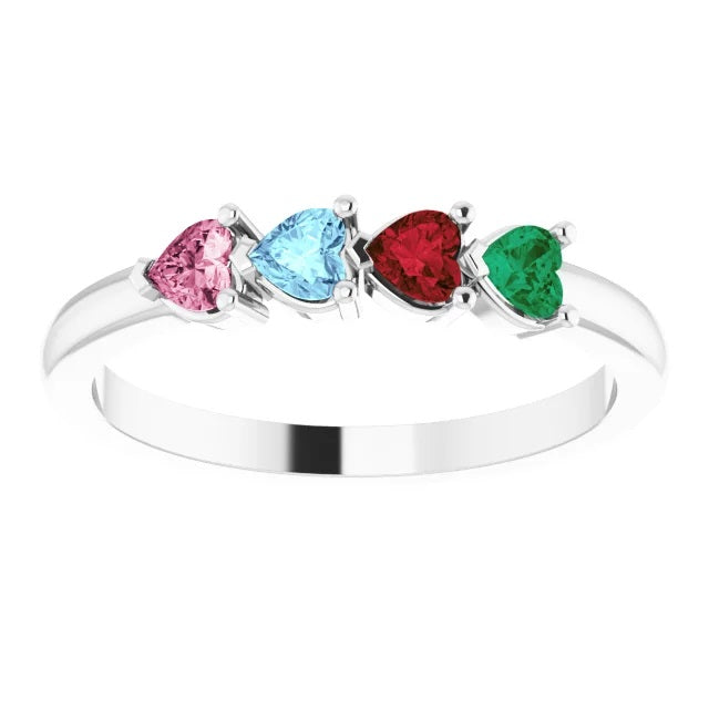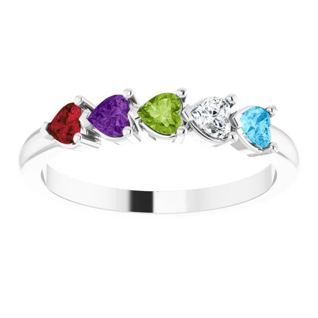 Silver Heart Shape Gemstone Mothers Ring, Family Birthstone Ring