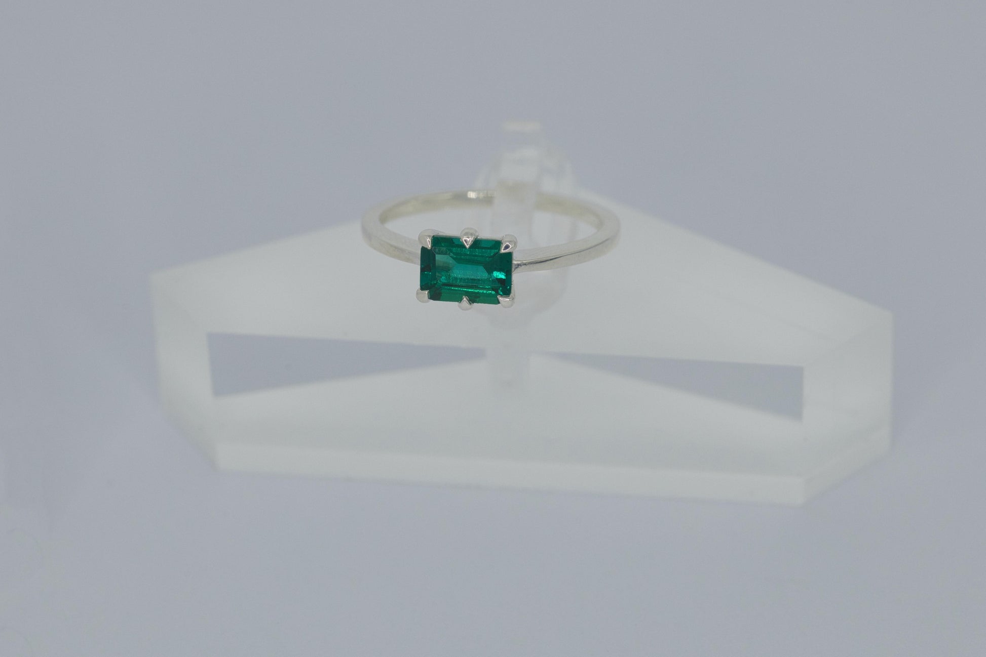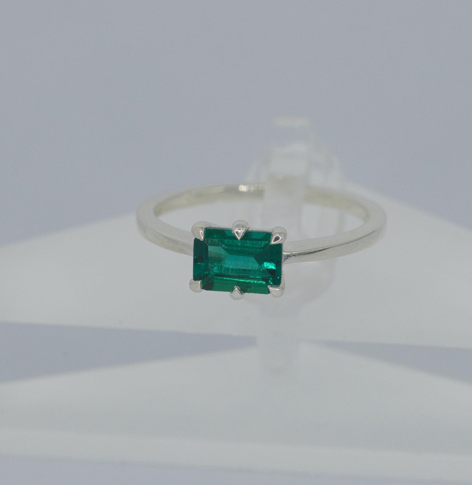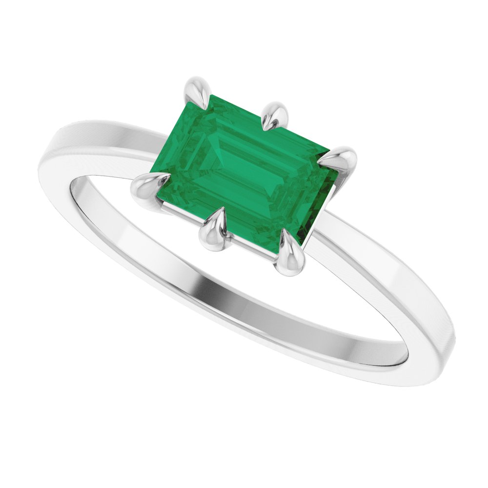 Solitaire Sterling Silver Lab Grown Emerald Ring