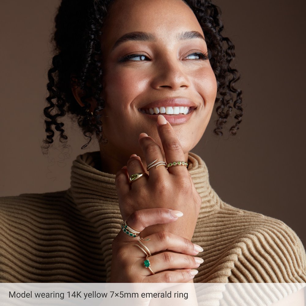 Our Solitaire Sterling Silver Lab-Grown Emerald Ring is the May birthstone, making it a meaningful gift for anyone born in May. The design of our solitaire emerald gemstone ring is modern & sleek, featuring 6 claw prongs for stone security. This can be used as a unique gemstone engagement ring, We are showing this with our sterling emerald stackable band ring, which together would be a very affordable wedding ring set.
