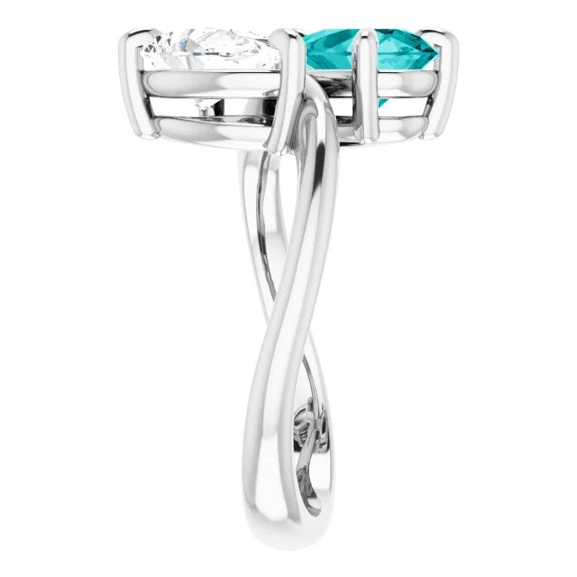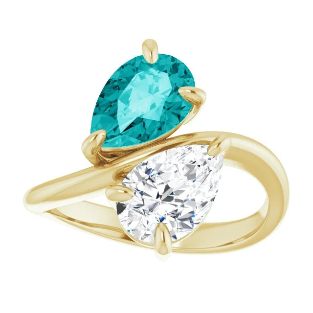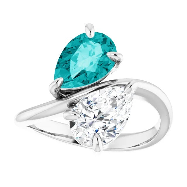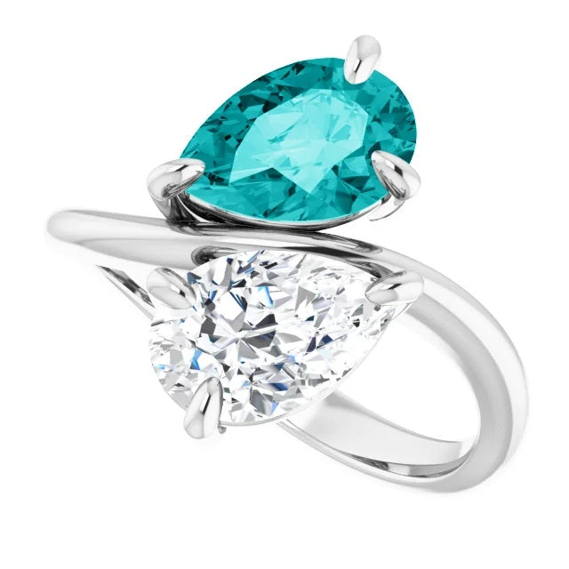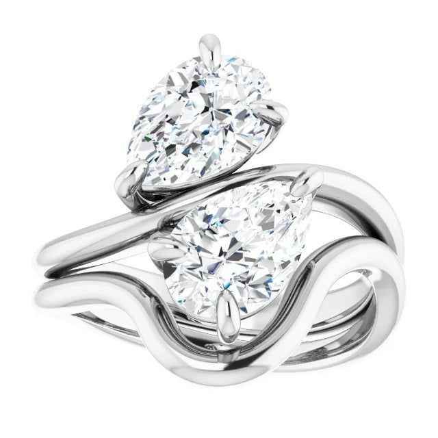 Two Stone Pear Moissanite Engagement Ring, Toi et Moi Ring